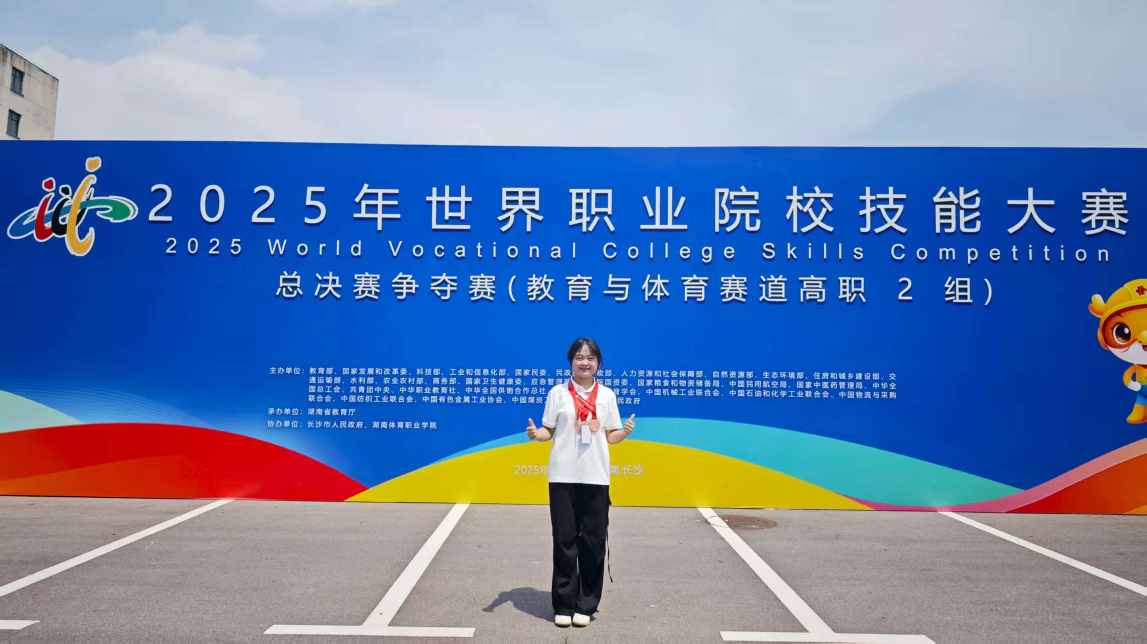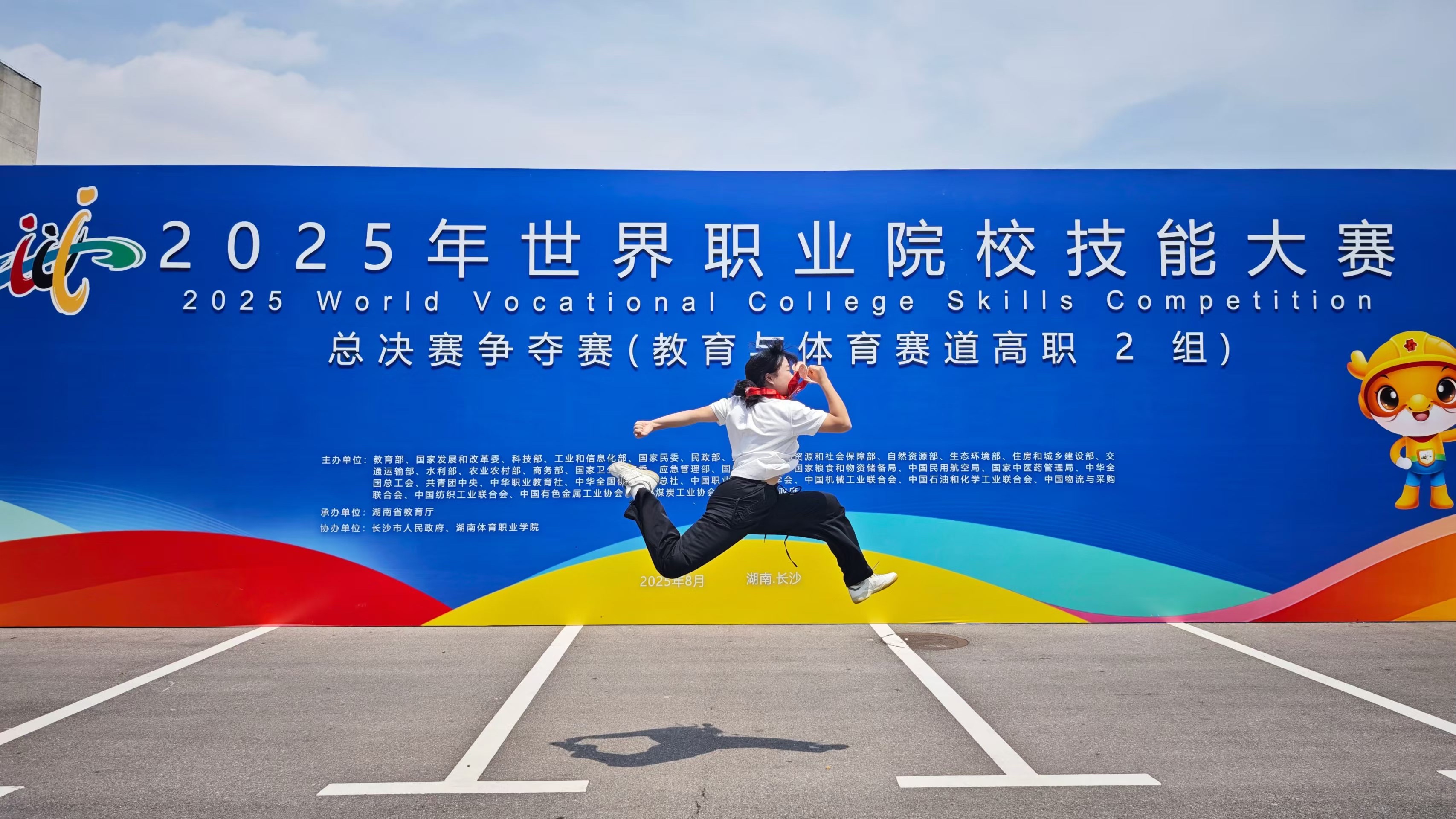 而这并非她首次在技能赛场上崭露头角。2025年5月,在福建省职业院校技能大赛高职组“体育活动设计实施”赛项中,她与团队成员密切协作,凭借创新的设计理念和扎实的现场表现,一举摘得团体一等奖。从省赛到世赛,从一等奖到铜奖,郑晓芳用一次次实战检验所学、打磨本领,真正做到了“以赛促学,以学强能”。