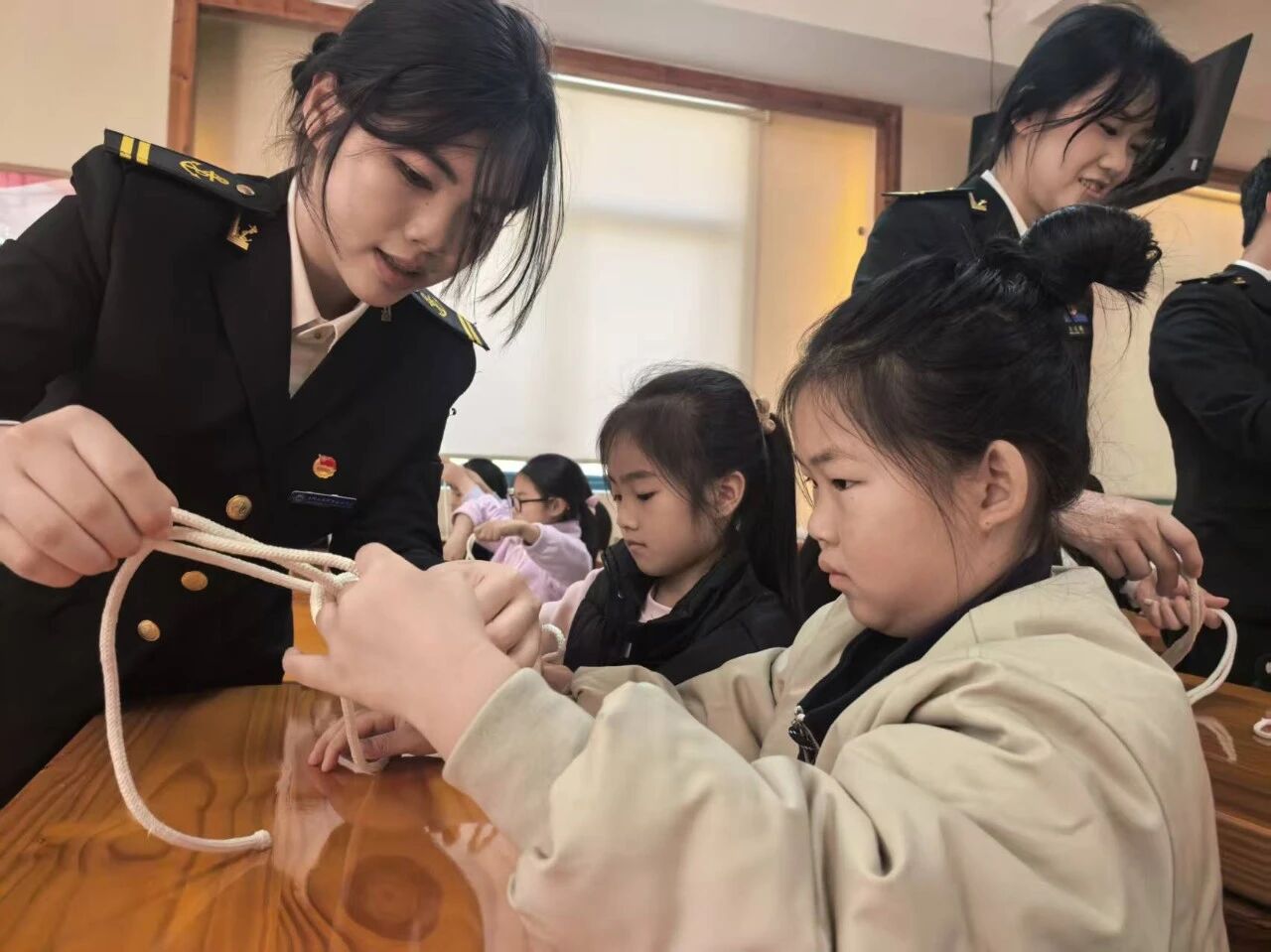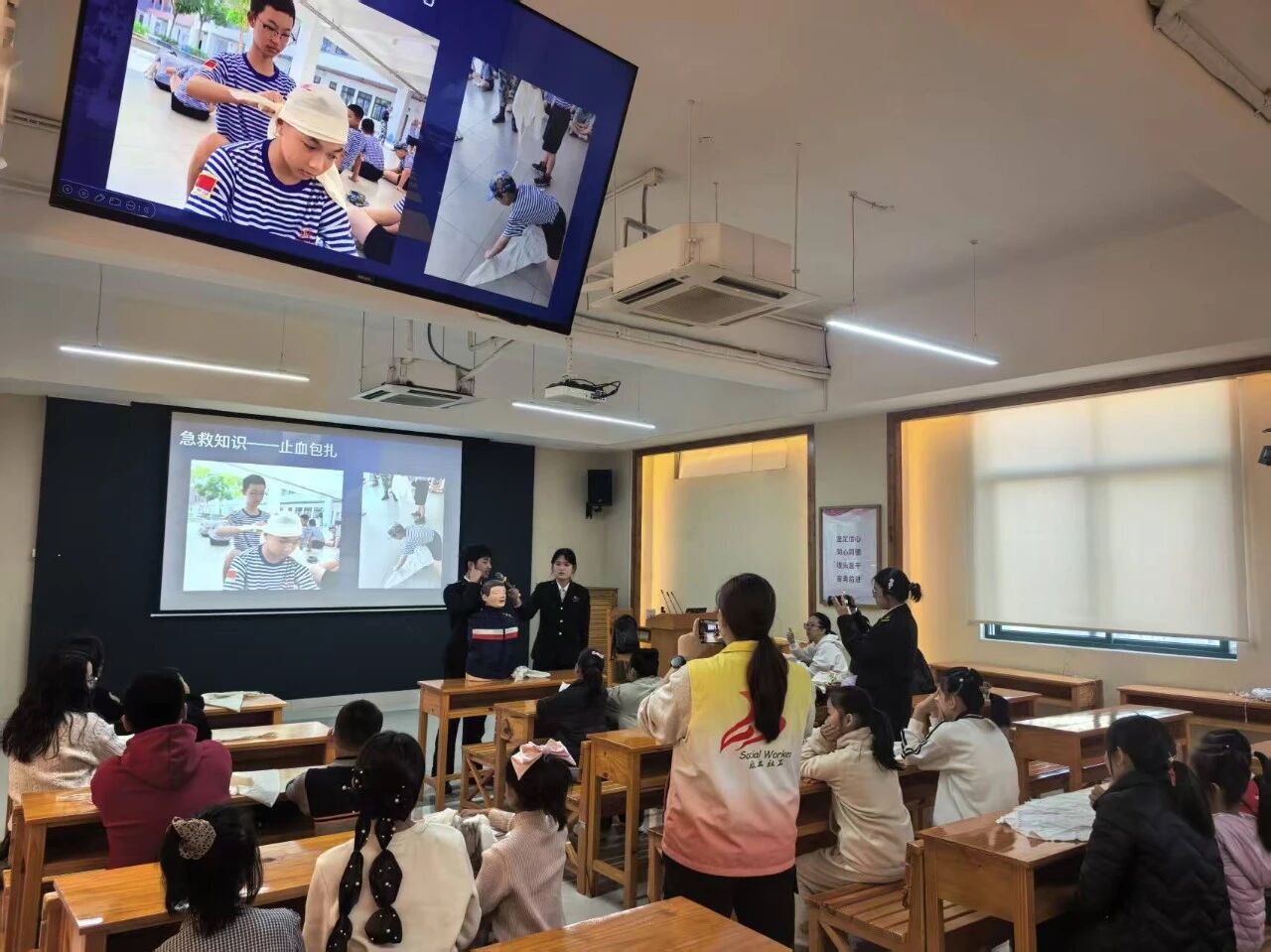 从水手结教学到心肺复苏、止血包扎等急救知识,志愿者们手把手教学,让孩子们在动手实践中掌握实用技能。