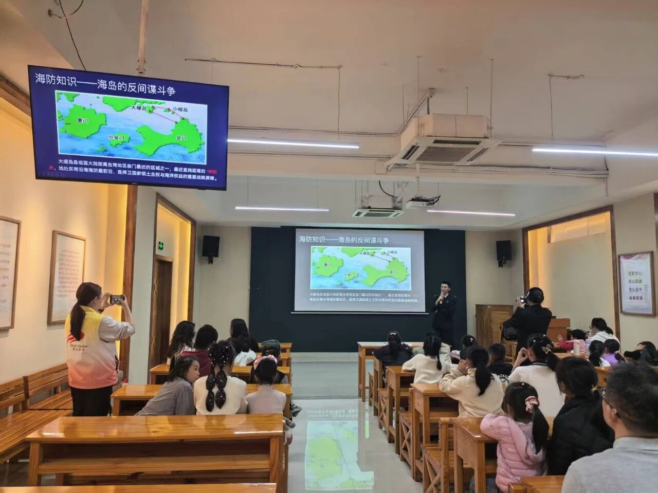 志愿者们用生动的讲解,带孩子们认识大嶝岛的海防历史,在地图前感受祖国海岛的战略意义,厚植爱国情怀。