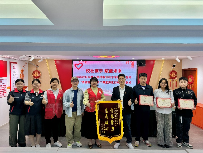 表彰仪式后,双方代表正式签订共建合作协议。学校将依托学科专业优势,组织志愿者围绕社区需求开展精准化服务;祥店社区则为学校提供稳定实践阵地,协助开展志愿服务考核与项目孵化,实现“高校赋能社区治理+社区反哺人才培养”的双向循环体系。