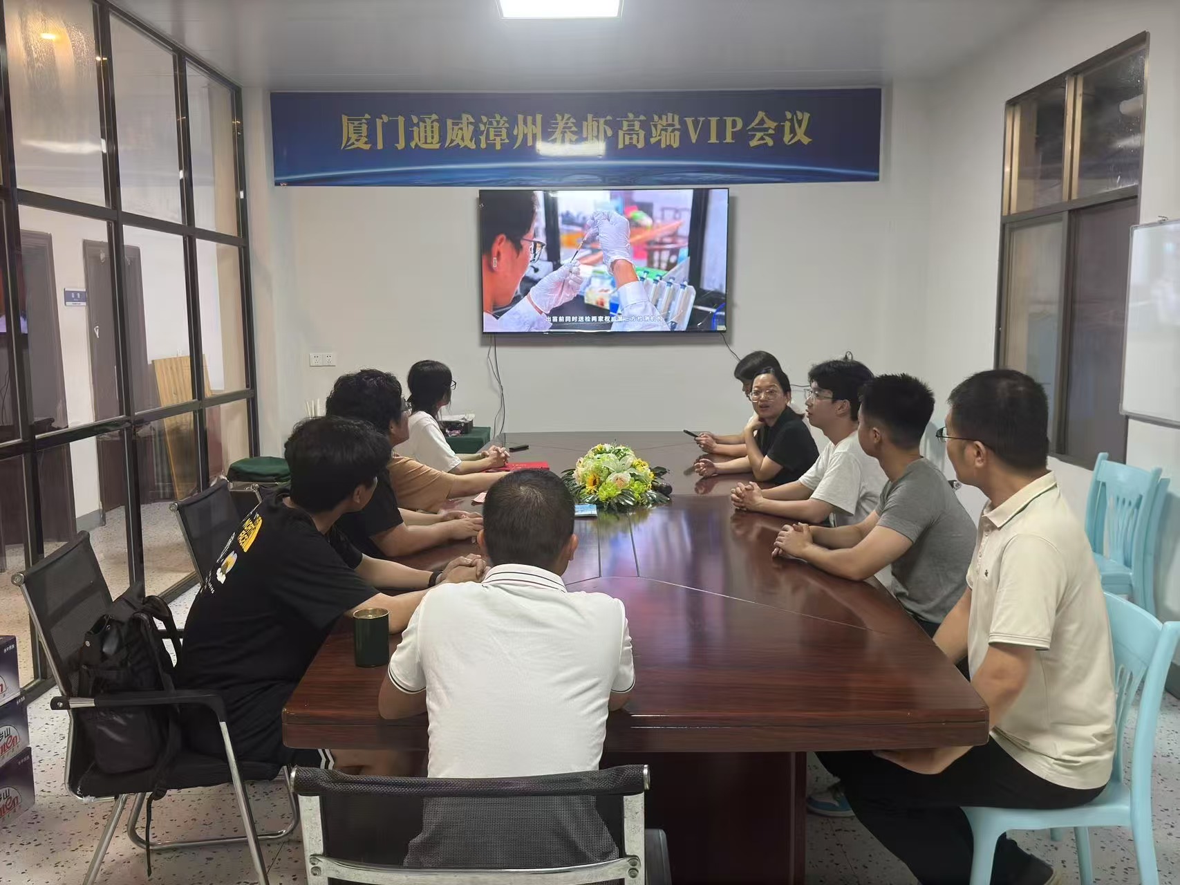 通威海壬总经理郑俊彬向实践队员详细介绍了南美白对虾养殖及市场现状。队员们从自身对行业的认知、养殖技能掌握情况出发,聚焦养殖技术重难点、团队协作、创新思路与企业人员展开热烈的思维碰撞。