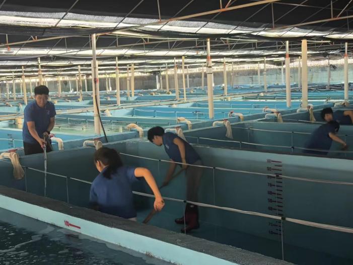 我校“渔”你同行·智饲云控实践队于6月30日奔赴漳浦县胜益、龙冠水产养殖场了解当地水产养殖情况,挖掘实际痛点,为后续技术应用找准方向。随后前往厦门市海洋与渔业研究所与科研人员深入交流,优化“智饲云控”系统方案。团队成员全程参与养殖实操,协助水质检测、水温监测、酸碱度测定等专业工作,为科学养殖提供数据支撑。