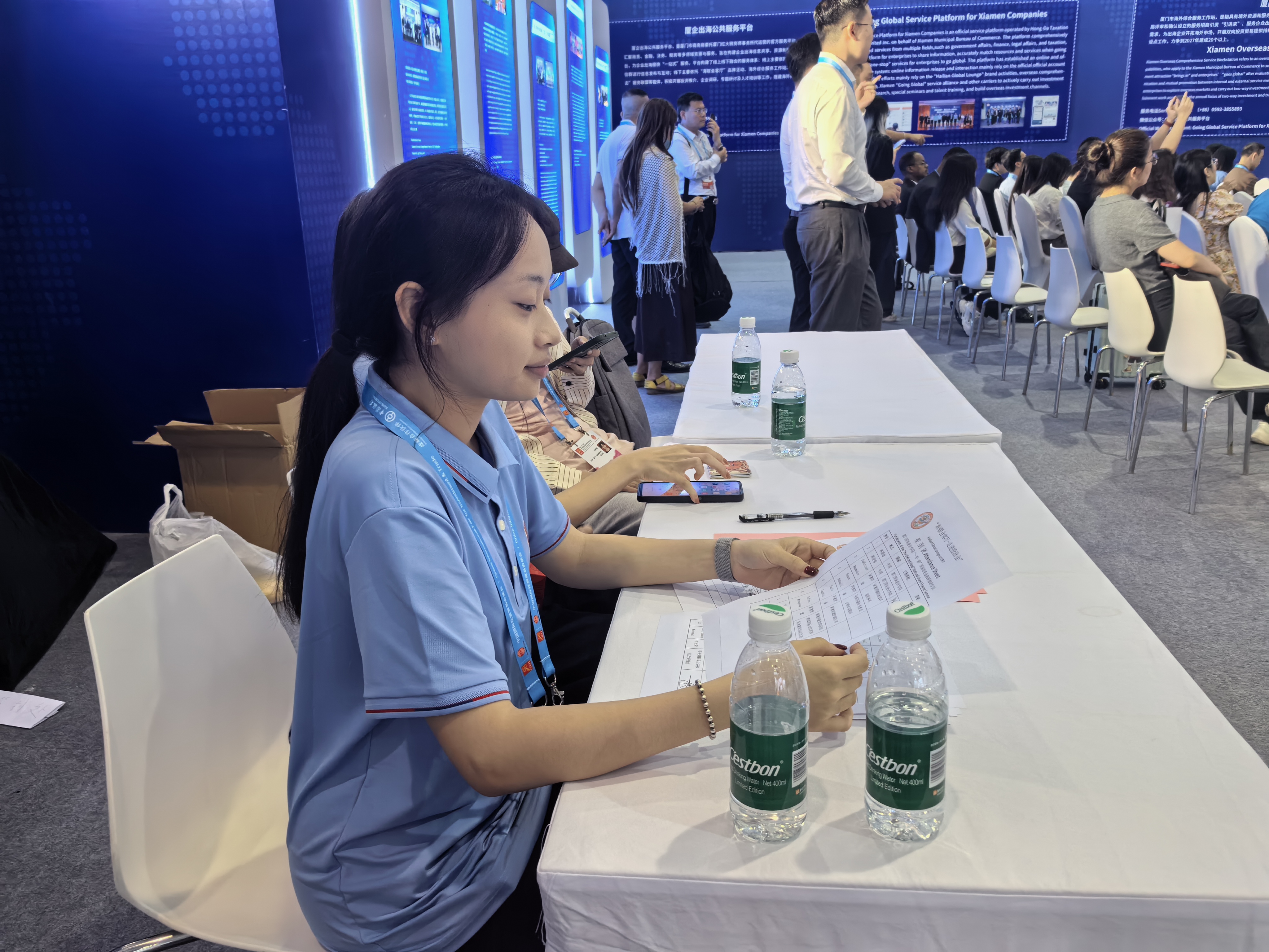 盛会期间,我校志愿者活跃在厦门国际会展中心的各关键岗位,成为一道不可或缺的风景线。在签到处,他们耐心协助客商完成注册手续,发放展会指南,用温暖的笑容和细致的服务迎接每一位到访者;在论坛入口处,他们积极引导人流,维护现场秩序,确保活动的顺利进行。