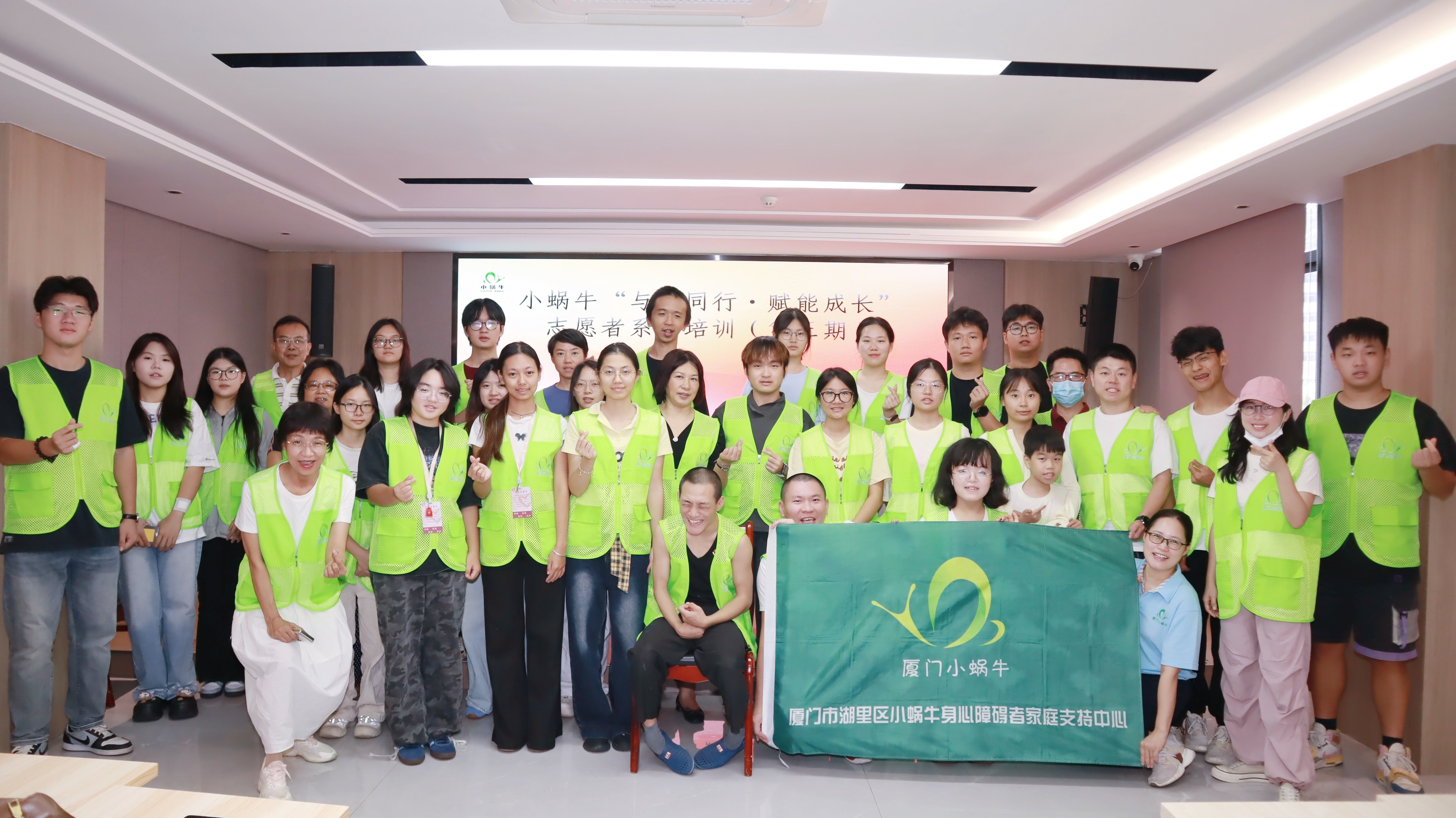 9月27日上午,“星星之火”义务支教服务队前往厦门两岸社区交流中心参加厦门小蜗牛“与爱同行,赋能成长”志愿者系列培训会。活动伊始,大家通过兴趣爱好分享轻松破冰,瞬间拉近彼此之间的距离。同时,主持人清晰地为大家介绍小蜗牛组织,讲解培训会注意事项,为后续服务筑牢基础。吕岭社区里有一群来自星星的小朋友们,他们可能有肢体障碍,也可能有语言障碍,他们更需要我们的陪伴。我们的志愿服务为小朋友们提供陪伴与支持,通过一对一陪伴、游戏互动,弥补情感缺失,建立情感信任,让来自星星的小朋友们可以在爱与关怀中快乐成长。随后,志愿者们共同定格合影,用镜头留存这份公益初心。同时,自由交流环节更让思想与善意碰撞出更多火花。紧接着进行情景模拟演练环节,志愿者们沉浸式体验与特殊儿童的交流场景,在实践中学习沟通技巧。此次培训不仅让志愿者们更加熟练掌握了与特殊儿童交流的核心技巧,更凝聚了一批满怀善意的公益伙伴。