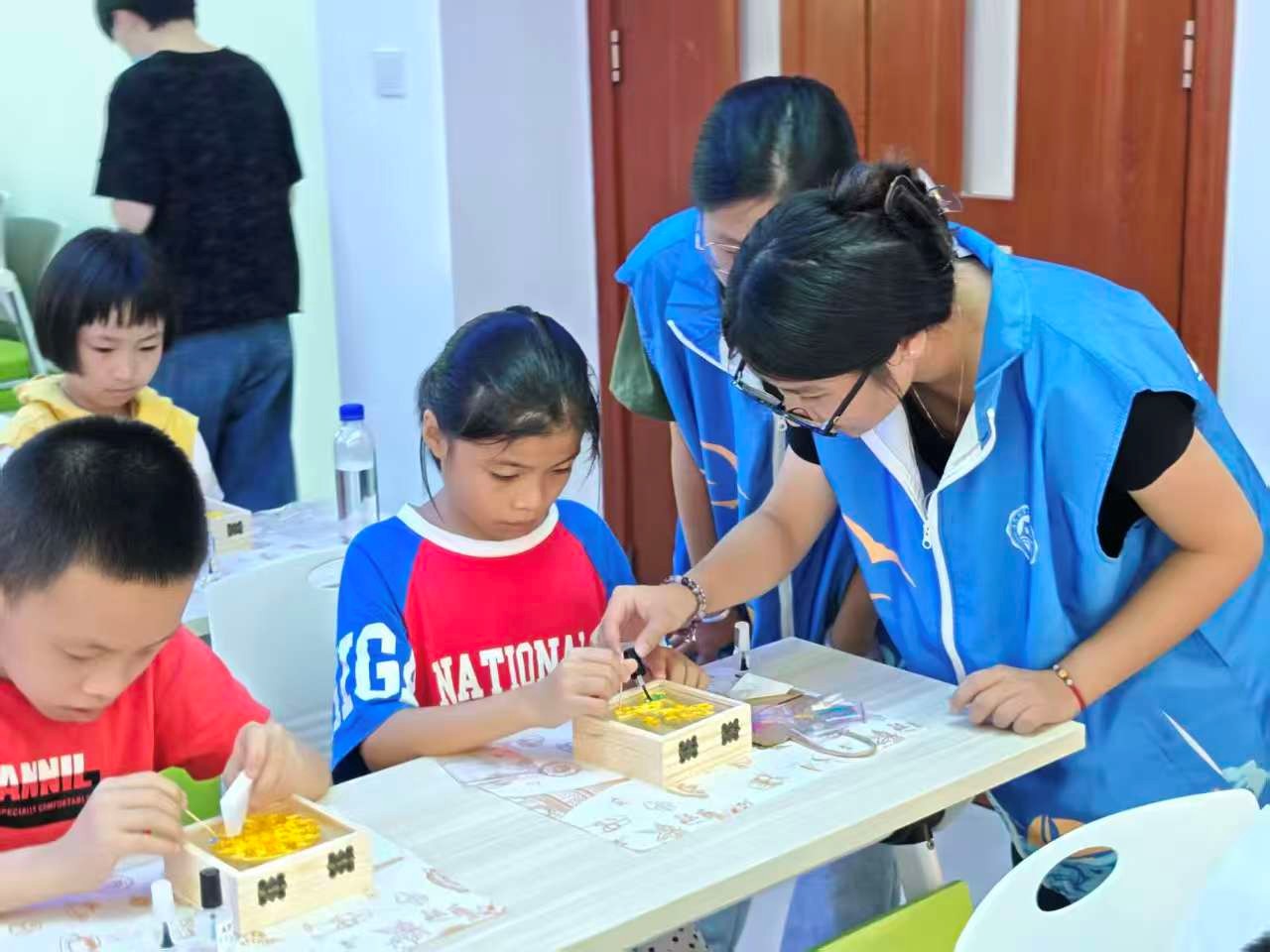 9月20日上午,“星星之火”义务支教服务队在祥店社区举办“掐丝邀月·匠筑祥厝”中秋节非遗手作主题活动。志愿者们热情洋溢,以PPT形式为小朋友们介绍景泰蓝掐丝工艺历史,并展示掐丝作品,让小朋友们领略到掐丝工艺浓浓的文化气息。在制作活动中,志愿者们将复杂的掐丝工艺拆解成一步步简单上手的小步骤,现场演示教学,小朋友们也亲手制作属于自己的中秋掐丝作品,感受到传统手作的乐趣。此次活动,不仅深化小朋友们的中秋文化感知,也让他们深刻体会传统工艺的价值。