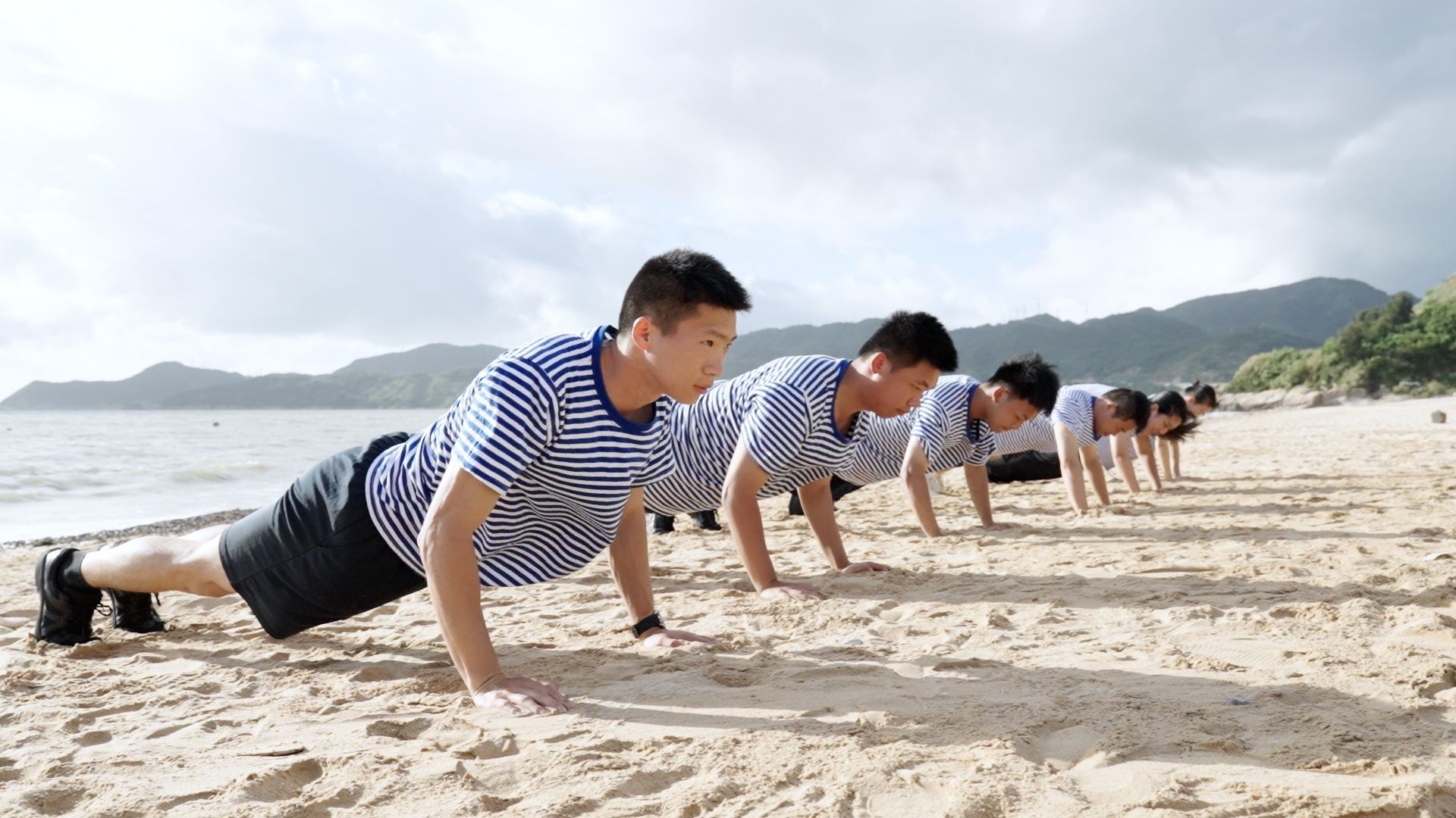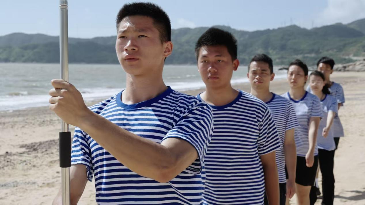北礵岛自明清便是海防要地,距钓鱼岛仅163海里,为让团队成员感受海防一线的坚守,实践队成员于第二天清晨赴边防沙滩,沿海岸线进行跑操、俯卧撑、开合跳等体能训练,开启“一日的巡岛工作“,让海魂衫与朝阳共绘"寸海不让"的青春誓言。