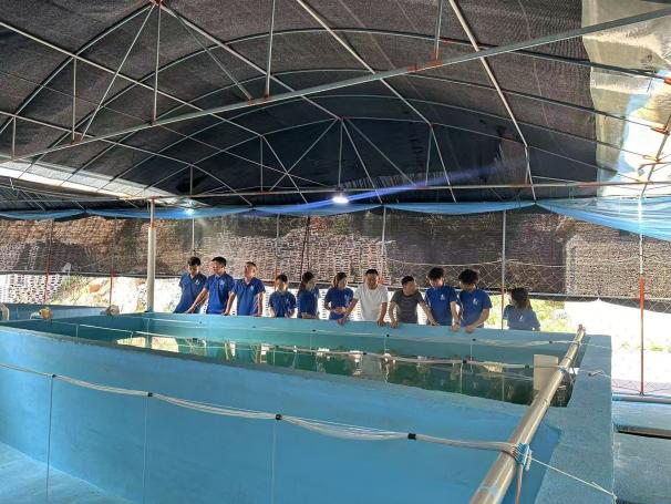 首站是漳浦胜益、龙冠水产养殖场。这里专注水产养殖,提供育苗、养殖、鱼病防治等全方位服务。团队实地观察传统养殖流程:从鱼苗投放、日常投喂,到水质管理、病害防控。通过与养殖户深入交流,精准捕捉到效率与精准度提升的迫切需求,为后续技术应用找准了方向。