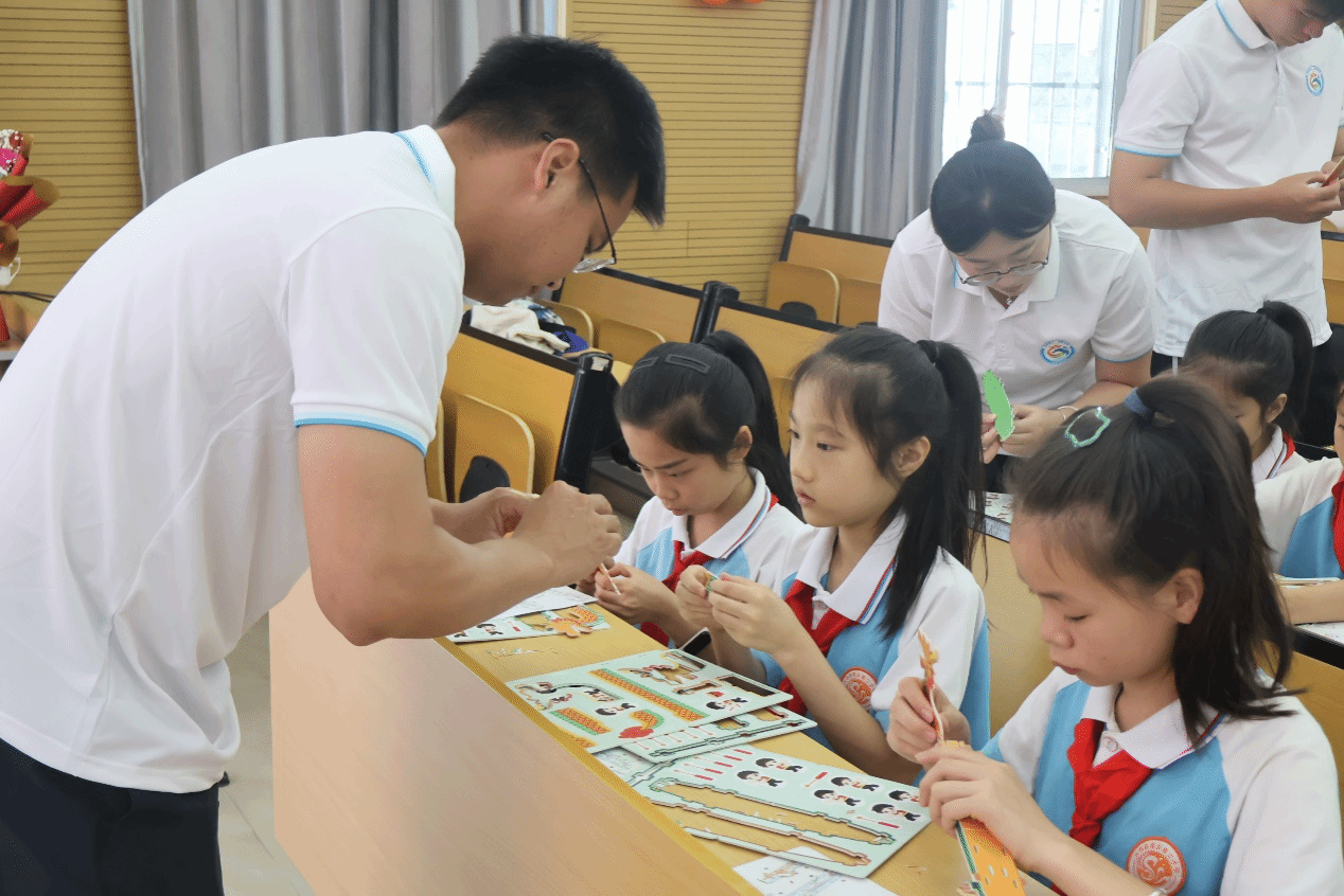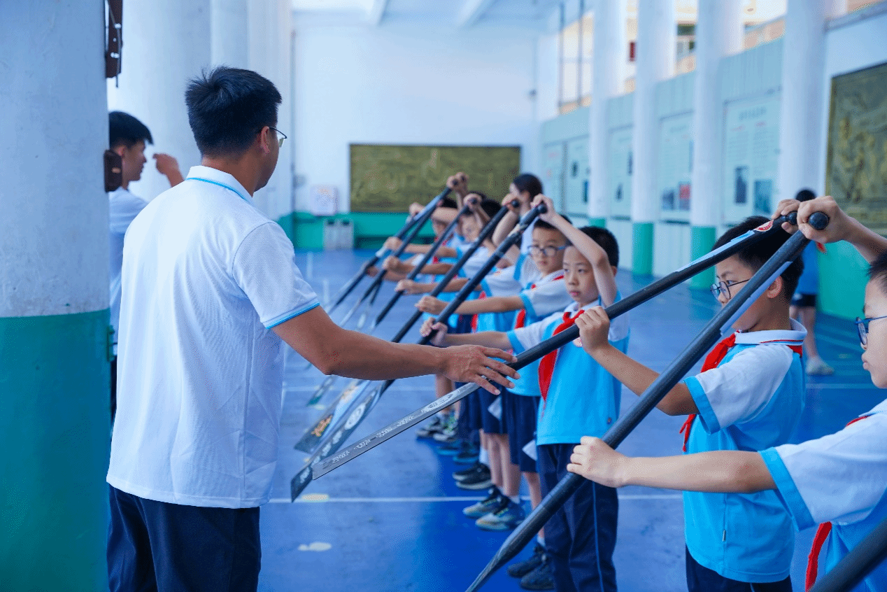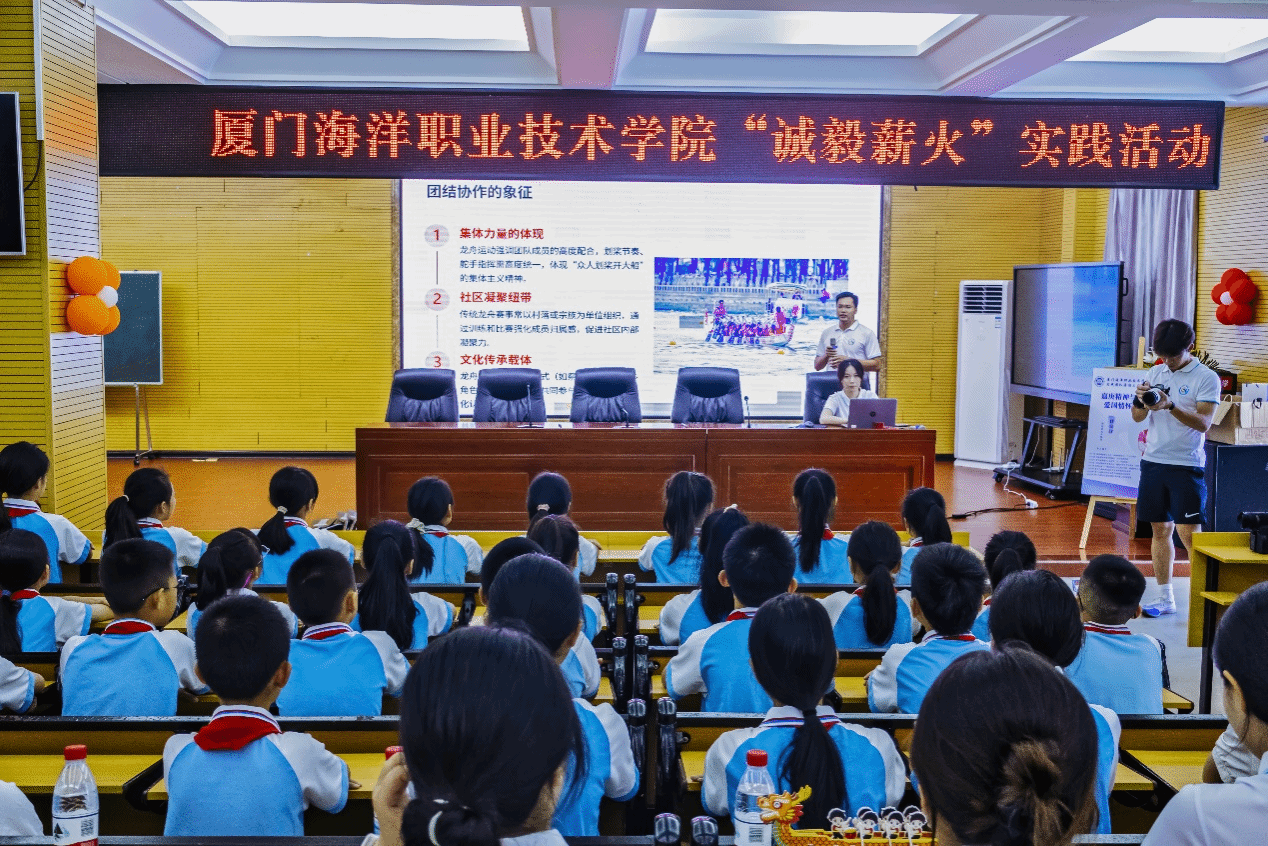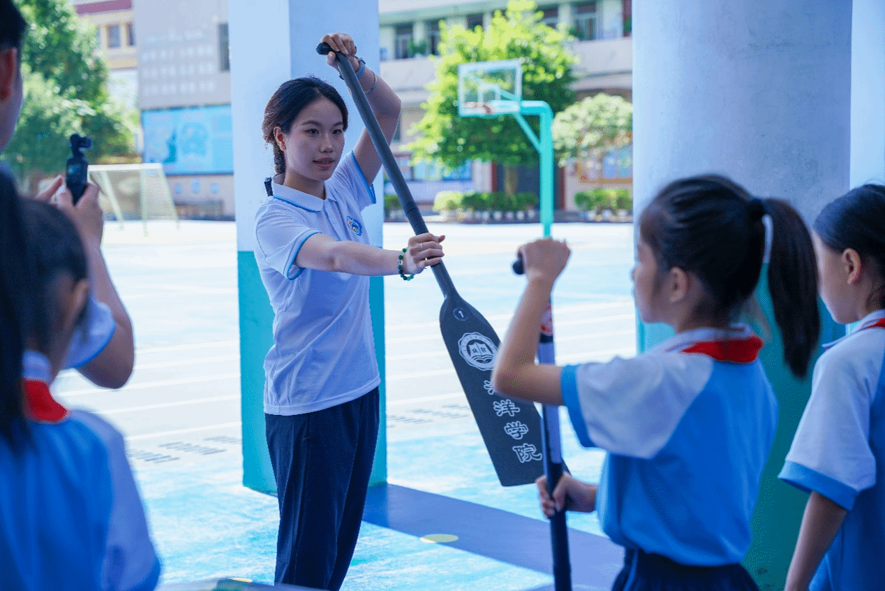 实践队将红色教育成果转化为育人实践,在大田县城关第二小学开展“嘉庚龙舟文化进校园”活动。亚运会龙舟冠军郑家欣以“嘉庚精神与龙舟文化”为主题,为师生带来一堂“大思政课”。他结合自身备战亚运时的经历,解读龙舟运动中“同舟共济、奋楫争先”的精神密码:“80年前,先辈用竹桨划出民族气节;今天,我们用科技桨劈波斩浪,这是体育精神的传承,更是时代使命的接力。”