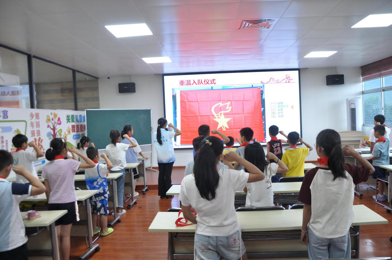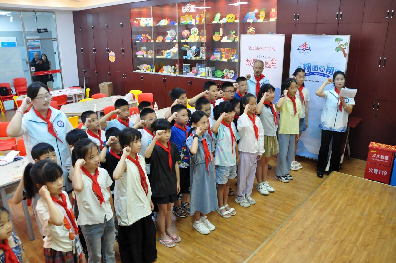 实践队队员黄琪莹从少先队队歌由来切入,用“童言童语”解读“和平统一、一国两制”方针,让同学们感悟两岸人民共同走向繁荣、共享和平的最佳路径。最后,师生们齐声高唱《我们是共产主义接班人》,一起重温入队誓词,嘹亮的歌声和庄重的誓言回荡在书苑中,激励着大家牢记习近平总书记对当代好少年的殷切嘱托,从自身做起,从小事做起,为祖国统一接续奋斗,让和平统一的理想在行动中绽放。