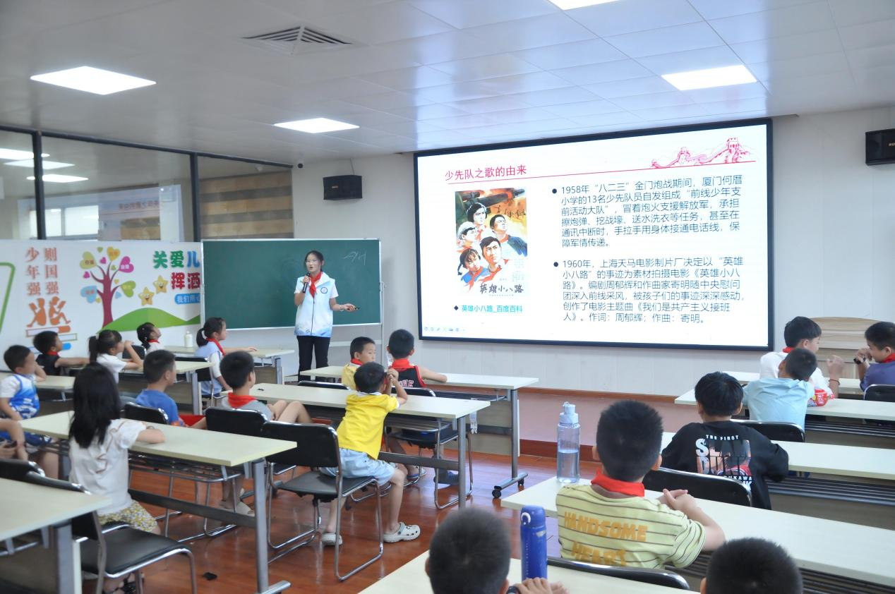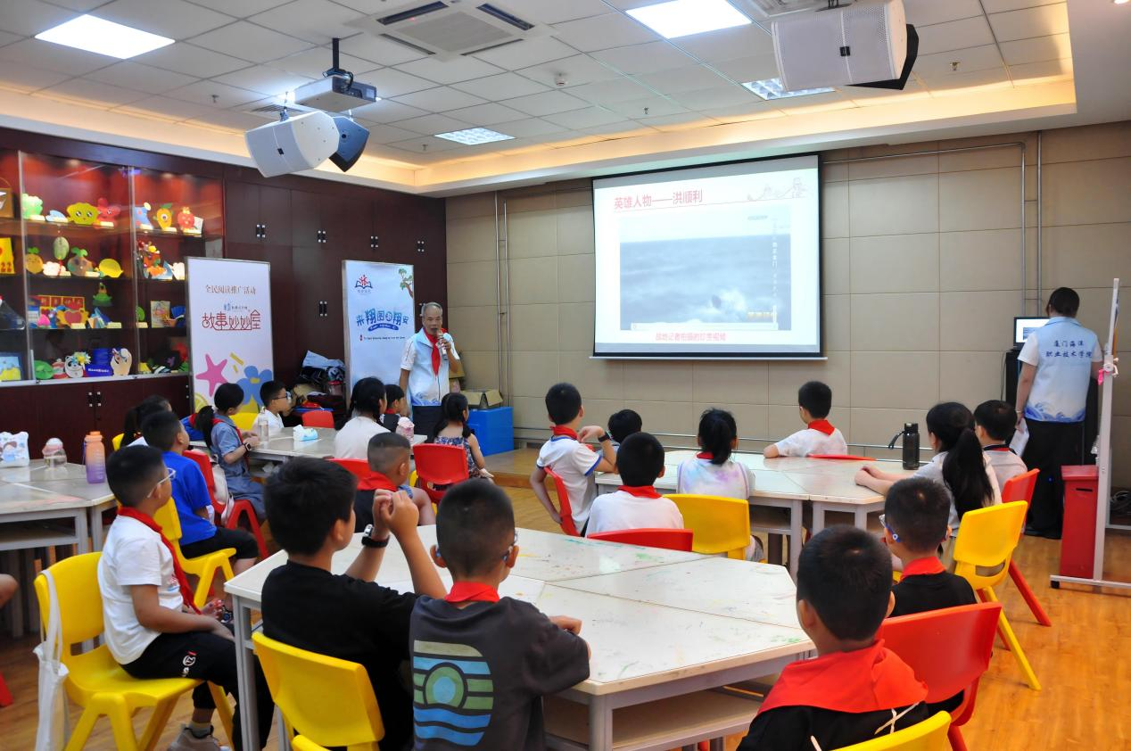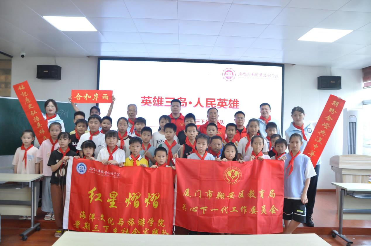 为深入贯彻习近平总书记关于“英雄三岛精神”的重要指示精神,引导青少年传承红色基因、厚植家国情怀,7月11日至12日,在许清荣老师的带领下,厦门海洋职业技术学院“红星熠熠”暑期三下乡实践队走进厦门市翔安区新店街道和南安市洪梅镇,以《英雄三岛·人民英雄》为题,开展了两场意义非凡的爱国主义教育宣讲活动。60余名小学生怀着崇敬之情到场聆听,共同开启了一段探寻英雄足迹、感悟爱国情怀的红色之旅。