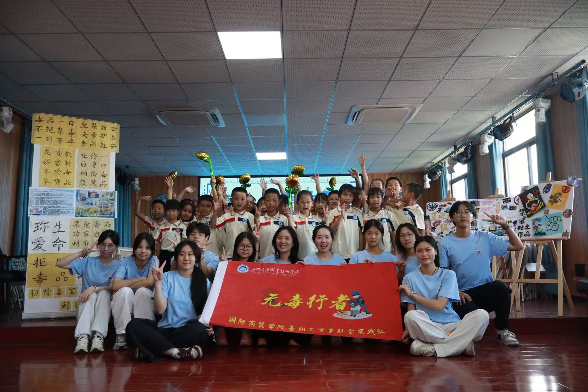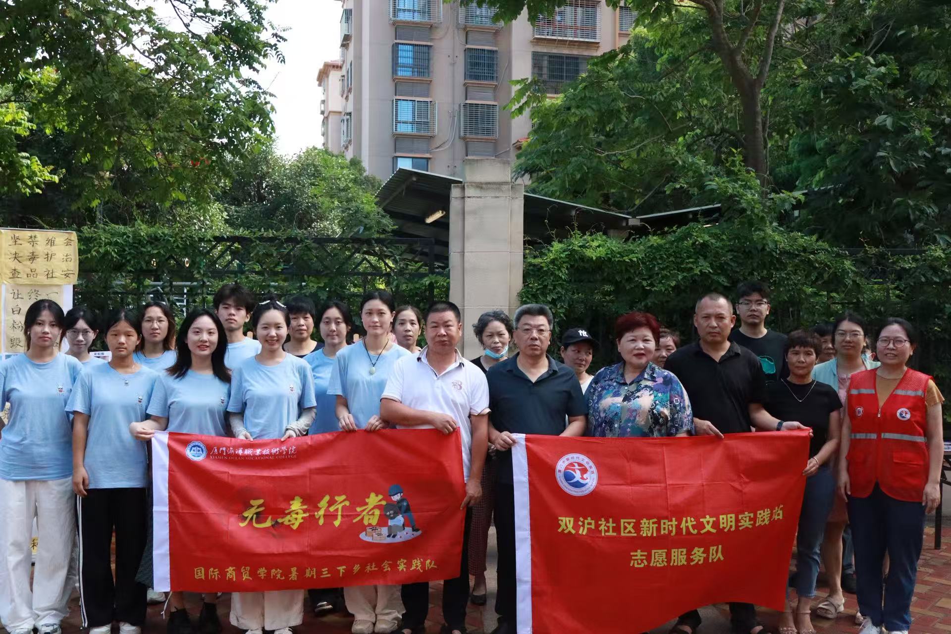 为积极响应国家禁毒号召,在国际禁毒日来临之际,国际商贸学院“无毒行者”三下乡实践队于6月25-26日,先后走进厦门市翔安区双沪小学及双沪社区,以“蓝色海洋筑梦・绿色无毒护航”为主题,紧密结合国家禁毒政策,精心开展“理论宣讲+实操体验”系列活动,向青少年和社区居民普及禁毒知识,传递“健康人生,绿色无毒”的理念。