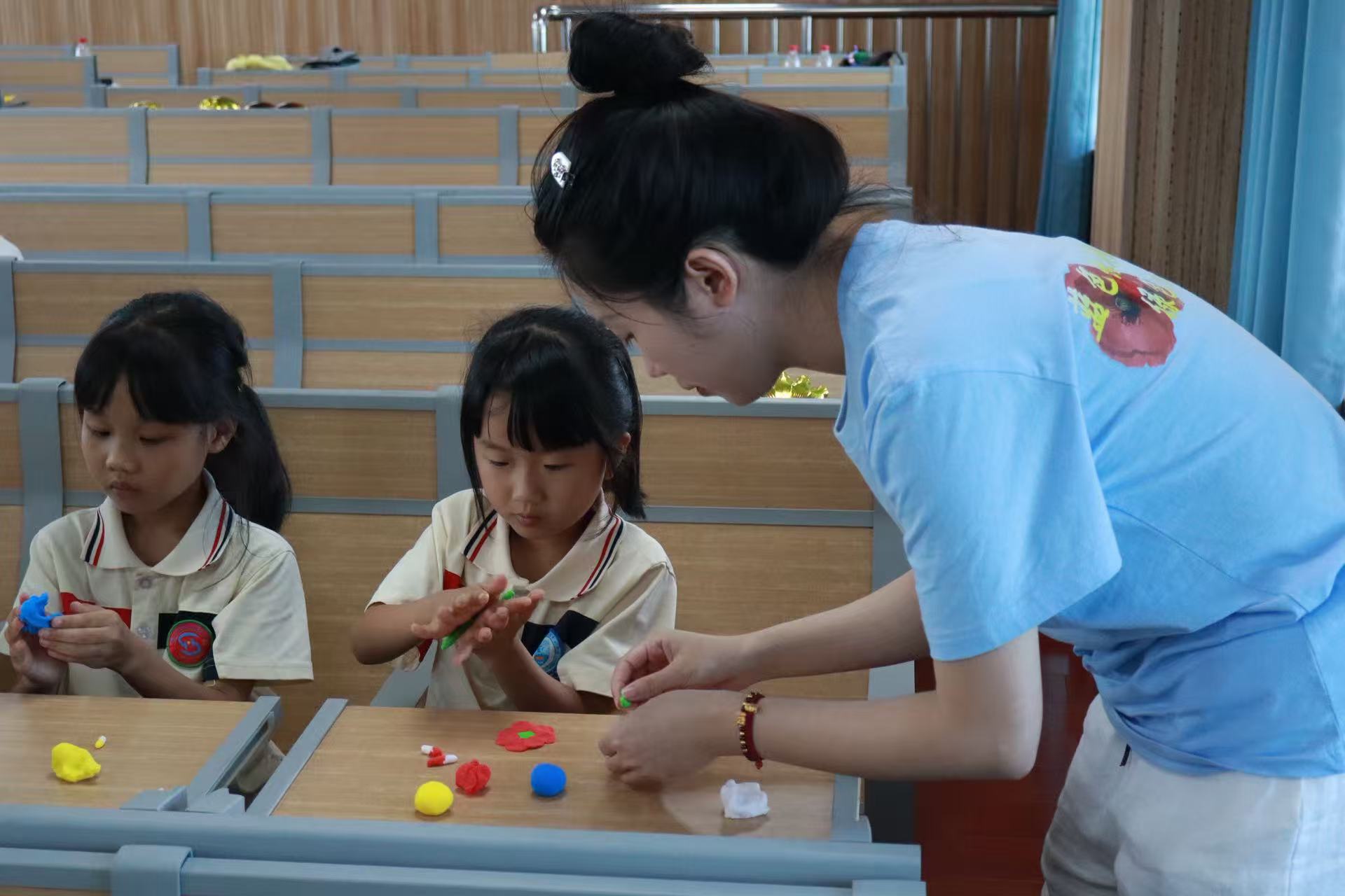 实践队成员和孩子一起制作粘土作品1