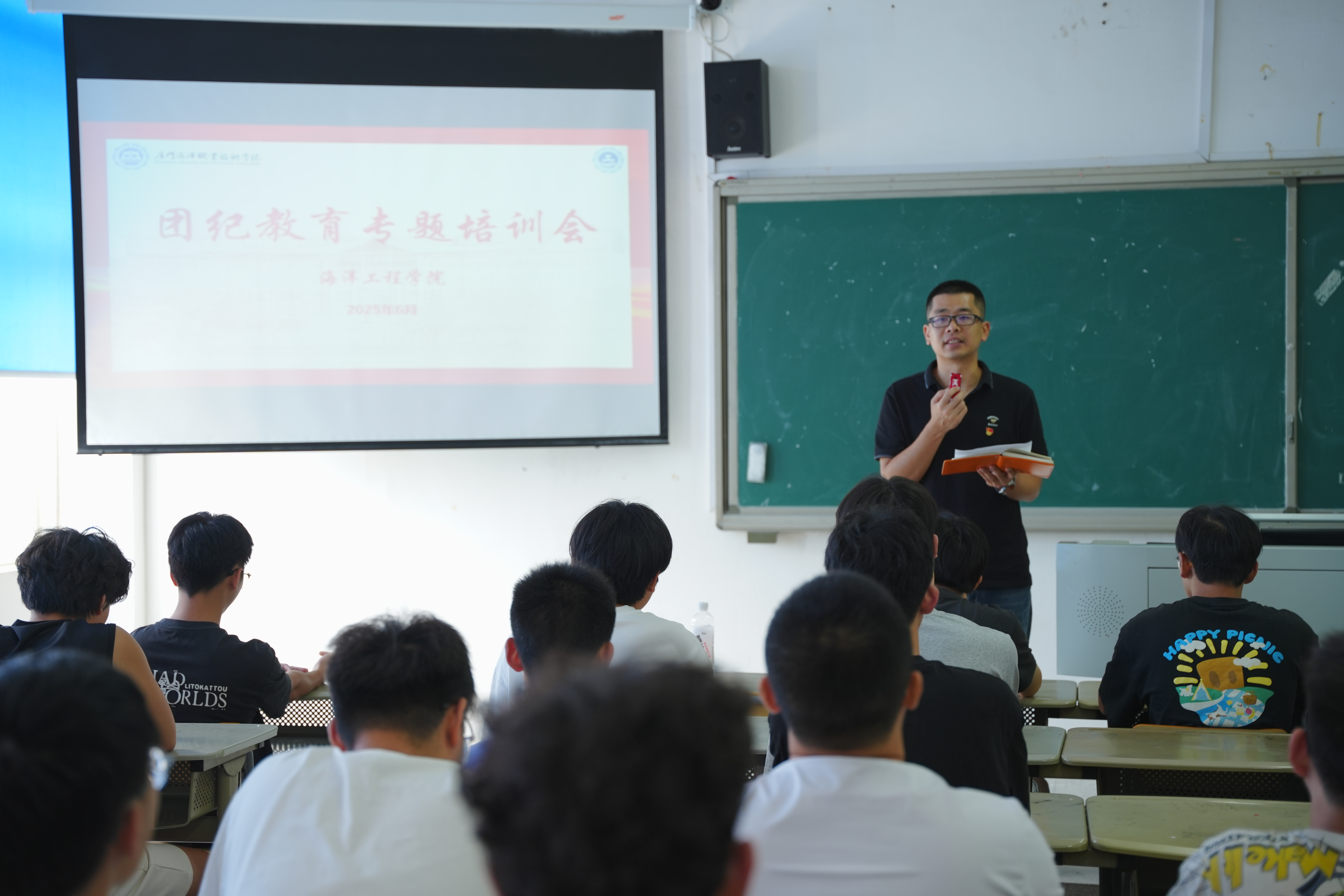 为进一步筑牢团员青年纪律防线,打造敢担当、善作为的团学干部队伍,海洋工程学院团总支于近日在1205教室召开团纪教育专题培训会。本次培训由辅导员李志佳主讲,学院全体团学干部和团员参会。