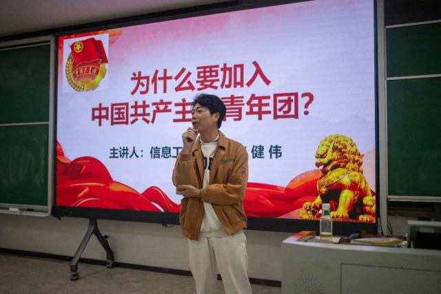 信息工程学院连健伟老师为大家讲授了《为什么要加入中国共青团》。连老师用三个问题开启了大家的思考:什么样的人有资格加入中国共青团?什么样的青年才可以加入中国共青团?为什么要加入中国共青团?他从中国共产主义青年团的性质、怎样才能加入中国共产主义青年团、如何成为一名优秀共青团员等方面进行详细的回答和讲解。