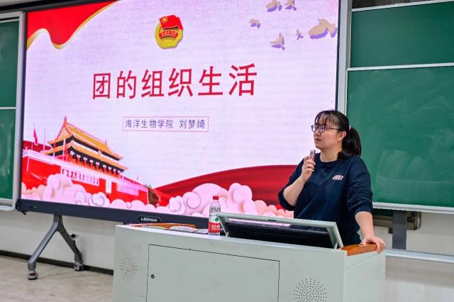 海洋生物学院团总支书记刘梦绮老师为大家讲授了《团的组织生活》。她给学员们详细讲解了“三会两制一课”制度。三会是推进团要管团、从严治团的重要载体,是加强团员思想政治教育和自我教育,强化团员意识,提升基层团组织凝聚力和战斗力的制度保障;“两制一课”中的两制是团员教育评议制度和团员年度团籍注册制度;一课是团课,团课是团组织对团员进行系统教育,提高团员思想理论水平和政治素质的重要途径,是教育引导团员在本职岗位和社会生活中发挥模范带头作用的重要载体,是团组织的一项经常性重要工作。