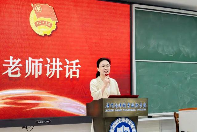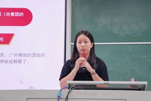 航海学院团总支书记王彬清老师为大家讲授了《共青团的光辉历史》。她带领同学们回顾中国共产主义青年团的百年光辉历史,号召学员们继往开来、踔厉奋发,从中国青年运动史中汲取勇毅前行的力量。