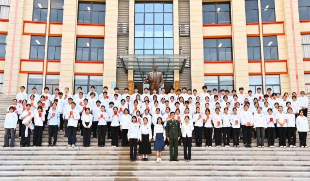 “我志愿加入中国共产主义青年团,坚决拥护中国共产党的领导,遵守团的章程,执行团的决议,履行团员义务,严守团的纪律,勤奋学习,努力工作,吃苦在前,享受在后,为共产主义事业而奋斗!”在领誓人铿锵有力地带领下,150名新团员面向团旗庄严宣誓。