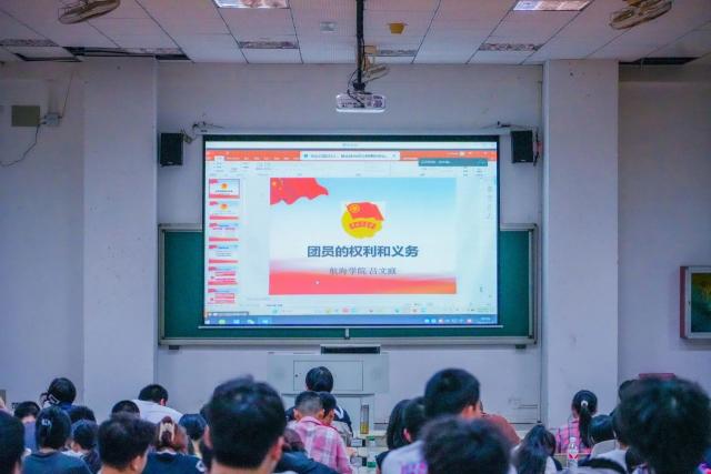 航海学院团总支副书记朱云鹏老师为大家讲授了《共青团的光辉历史》。他带领同学们回顾了共青团的百年光辉历史,呼吁同学们铭记历史,探寻青年运动的内在精神力量,学习其精神,运用其精神,从中汲取力量,稳步前行。