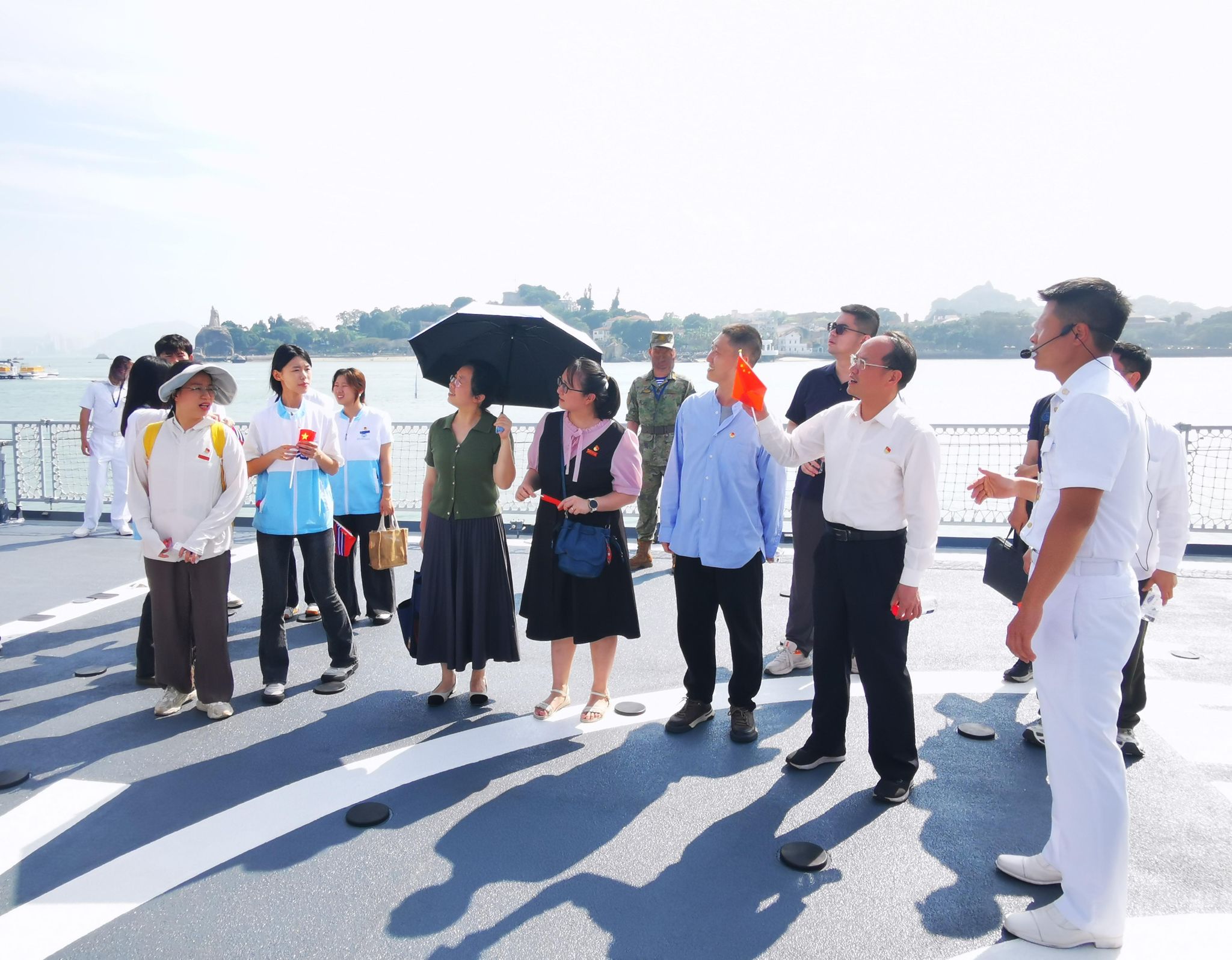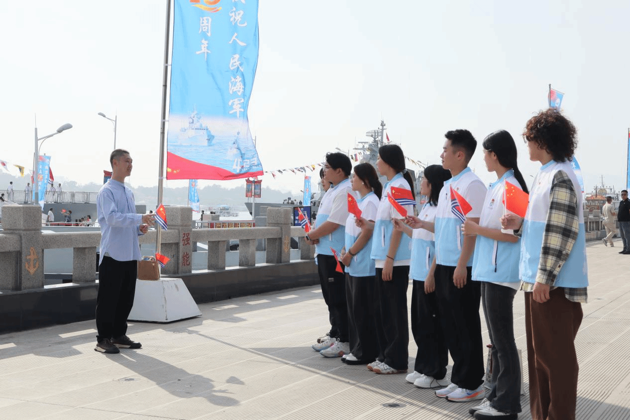 诚毅精神传薪火,向海图强闯深蓝。为弘扬我校师生爱国拥军、崇尚英雄的历史传统,学习人民海军的优良作风,切实增强青年学生的海防意识、国家安全意识。在人民海军成立76周年之际,4月21日下午,我校师生走进“海上先锋艇”“海上猛虎艇”荣誉部队,在军舰上开启了一堂别具一格的“海洋强国”大思政课,深刻领悟习近平总书记关于建设海洋强国、加强海军建设的重大战略思想,感受新时代人民海军建设发展成就和海军官兵昂扬精神风貌。