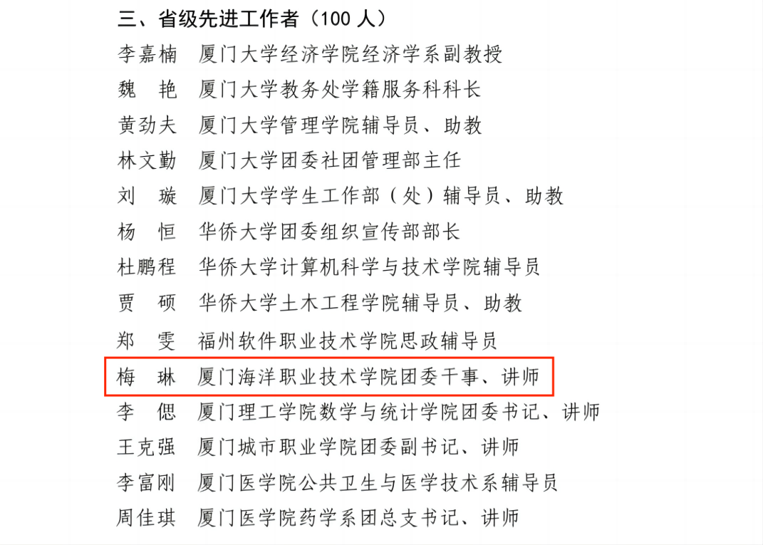 厦门海洋职业技术学院团委干事