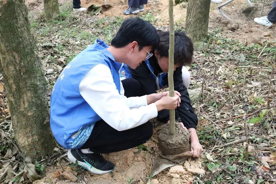 活动现场,一抹靓丽的“志愿蓝”和新芽绿树相互映衬,青年志愿者们充分发扬“团结、友爱、奉献、互助”的志愿精神,个个干劲十足,分工协作,相互配合,挥锹铲土、扶苗填坑、踩实固苗、培土浇水,每个步骤有条不紊地进行着。