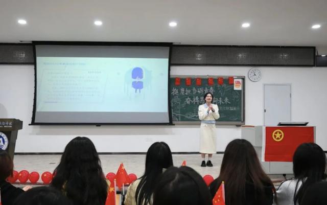 班长罗白玉讲授《挺膺担当》微团课。她从华为手机的发展历程引出新时代青年应挺膺担当。她说,党的二十大报告指出:青年兴则国家兴,中国发展要靠广大青年挺膺担当。时代造就青年,盛世成就青年。我们要牢记嘱托,学好本领,为中华民族的伟大复兴贡献青春力量。