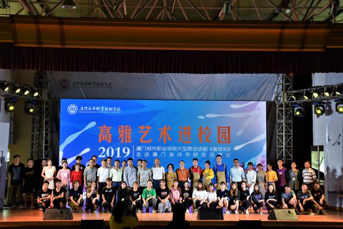 5月30日,厦门城市职业学院应邀到我院思明校区礼堂举办大型原创话剧“盖军衔”专场演出,该活动是我院2019年高雅艺术进校园的首场活动。院党委副书记汤忠民、纪委书记缪雄平、副院长马国玄,盖军衔爱人王嫣明女士及各系部负责人和我院500余名师生共同欣赏了这场高水平的话剧表演。