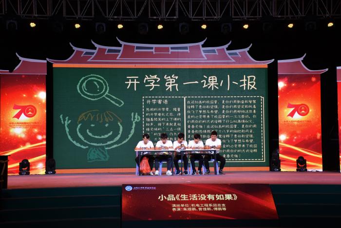 今年是中华人民共和国70周年华诞,我院以“青春告白祖国奋进拥抱时代”文艺晚会的形式祝愿我们最伟大的祖国母亲生日快乐!文艺晚会围绕祖国70周年华诞,将最美好的祝愿献给我们最伟大的母亲,祝愿我们的祖国繁荣昌盛,祝愿我们的明天更加美好。我们是新一代的新青年,更是新一代的海院人,祝2019级全体新生,不忘初心,继续前行。