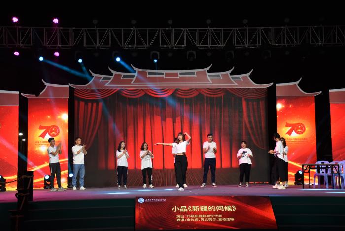 大学生艺术团的开场舞《海•风》拉开了整场晚会的序幕。一场《生活没有如果》告诫新生,在大学生活适当的参与学生活动锻炼提升自己才是对自己未来铺垫。街舞《shake the world》燃爆全场,展现了我院大学生青春昂扬、锐意进取的朝气。19级新生军训教官的《迷彩英雄》展示了一支文明之师,威武之师的英雄风采。古丝绸之路打开了各国友好交往的新窗口,书写了人类发展进步的新篇章,泰国留学生代表为我们带来的《the light of youth 》让我们近距离的感受到丝绸之路的魅力。“没有国哪有家”如今的锦绣山河都是先烈们用鲜血换来的,一封《家书》让我们身临其境,感受战争的残酷。中华民族伟大的复兴梦,需要饱满爱国热情的青年人勇当先锋,用自己的热血去传承具有时代光芒的民族精神,《强国一代有我在》带你领略海院学子的精神风采。19级少数民族学生代表欢聚一堂,以民族特色舞蹈共同祝愿祖国母亲70周年华诞。