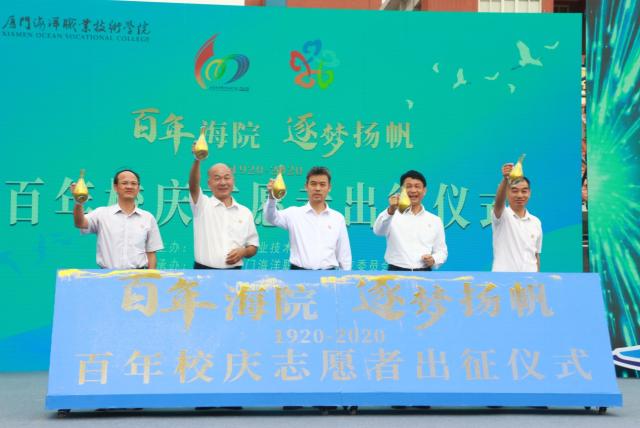 “我自愿成为一名光荣的百年校庆志愿者,弘扬志愿服务精神,践行社会主义核心价值观,以实际行动传递爱心,服务他人,坚守本职工作,助力海院开创新世纪,为学校发展贡献青春力量。”400名师生志愿者的铿锵誓言在响彻新时代广场的上空。2020年10月19日下午,厦门海洋职业技术学院百年校庆志愿者出征仪式在翔安校区新时代广场隆重举行。校党委书记陈一端、校长陈昌萍、校党委副书记汤忠民、纪委书记缪雄平、副校长马国玄以及400名师生志愿者参加了本次出征仪式。
