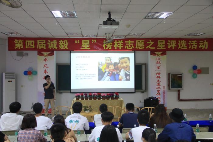 本次评选,参赛志愿者以PPT与视频的形式向到场的老师、同学以及周边兄弟院校的志愿者们分享志愿路上的点点滴滴,传承志愿精神的真谛,展海院志愿者风采。第一部分志愿者风采展示与现场答辩,从选手展现的不同的志愿故事中我们可以看出志愿活动的“阿娜多姿”直观的让我们感受到志愿服务过程中的奉献、真情、坚持、收获。在选手回答评委提出的问题中我们更能感受到志愿者们此生无悔入志愿的气概,更深知了志愿成果从来都不是一蹴而就的。第二部分是全新的志愿服务队访谈形式,主持人根据服务队的历史背景,服务形式与服务队负责人进行深度访谈让现场嘉宾们加深了对服务队的了解,现场愉快轻松。两支服务队都以一段短视频开篇点题,支教一年,自教一生。支教服务队的短视频让人感动不已,支教老师教导小朋友们做手工、学跳舞、打篮球、学写字、玩游戏,一幕幕珍贵的画面出现在大屏幕上,孩子们与这些大孩子天真纯洁的笑容感染了整个会场。书海逸香服务队在繁忙琐碎的工作并没有停下脚步,一个平凡的举动感动着无数人。两支服务队的精彩激起了外校志愿者的兴趣在会上与两支服务队负责人进行志愿服务经验交流,进一步的了解了这两支明星服务队,加深了各高校对我院志愿服务品牌的认同,在热烈的掌声中主持人宣布谢小辉,许佳莹,叶柳伶获得明星志愿者称号,其余选手获得明星志愿者提名奖。“星星之火”义务支教服务队与书海逸香服务队获得明星志愿服务队称号。