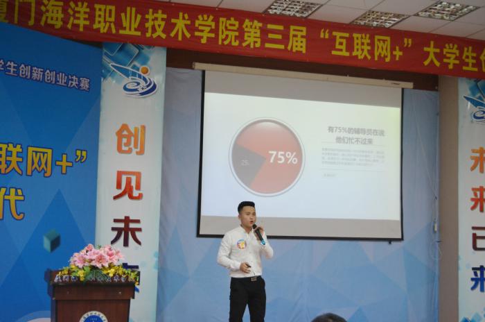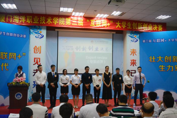 6月26日晚,我院第三届“互联网 ”大学生创新创业大赛决赛在翔安校区T2报告厅举行,11支晋级决赛团队参加本次活动。北尚投资董事长、厦门十佳青年洪语斌,厦门太古集团董事、厦门航空工业有限公司副总经理李正林,福建省大学生创业扶持促进会常务秘书、港威(厦门)传媒有限公司董事总经理陈勇成,厦门火炬集团创业投资有限公司副总经理、中国创新创业大赛厦门赛区评委张捷,厦门达岸文化传媒有限公司董事长吴扬超,厦门领智信息科技有限公司执行董事、创客坞创始人李一洪,胡桃智能科技创始人、车库咖啡厦门创业孵化经理胡立涛担任了比赛评委。院党委副书记汤忠民,各系党总支书记,各科室负责人,各系团总支书记、指导老师、辅导员及200余名学生代表共同参加了本次大赛。