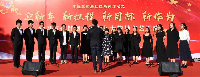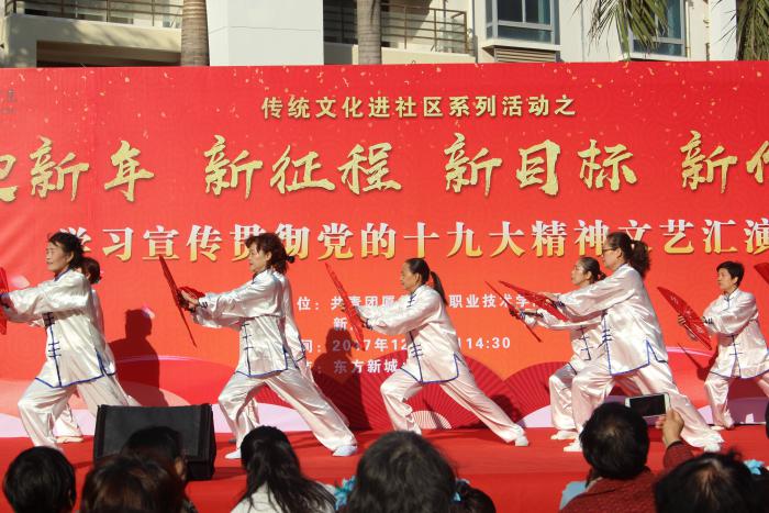 为学习宣传党的十九大精神,配合我院传统文化进社区活动的主题,本月19日下午,由我院团委主办、新店镇新兴社区协办的“迎新年 新征程 新目标 新作为”文艺汇演在新兴社区文化广场隆重举行,活动吸引了近500名社区居民前来参与观看。
