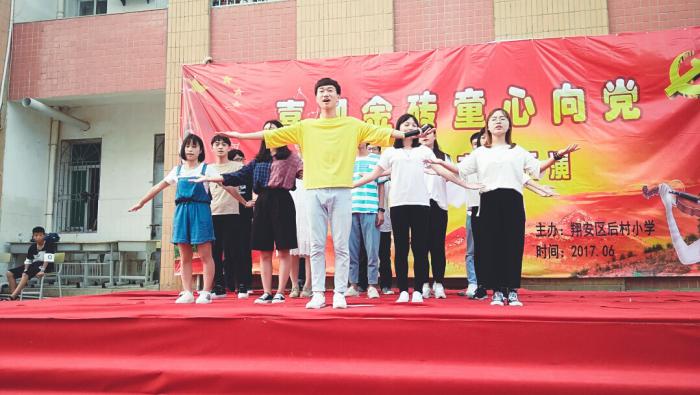 为喜迎金砖,提高小学生的文明修养,号召小学生争当“阳光自信,文明有礼”城市小主人的形象,6月1日,我院“星星之火”支教服务与后村小学携手举办“喜迎金砖,童心向党”庆六一活动,此次活动以文艺汇演的形式开展,接力参与志愿者520余名。