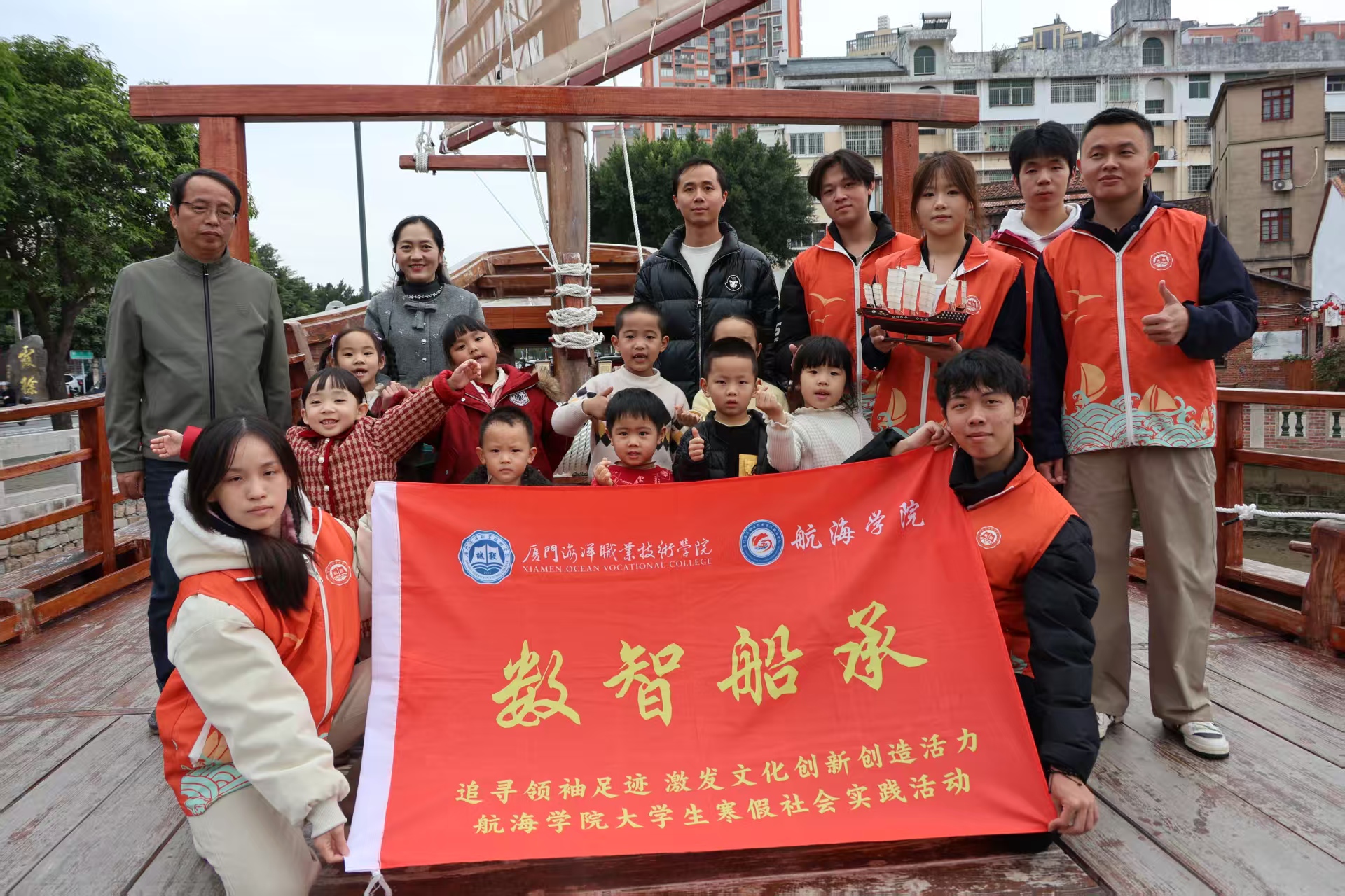 近日,厦门海洋职业技术学院“数智船承”社会实践队,深度体验“探索文化和科技融合的有效机制”的生动实践,以“船”为锚点,聚焦航海文化主题,围绕“研学探访—科普活化—创意实践”主线,深入南安文化创意智能制造产业链一线、萝苜田文化街区、筶杯岛与文创公司等,开展了一场聚焦数字化赋能的专题调研与海洋科普实践。