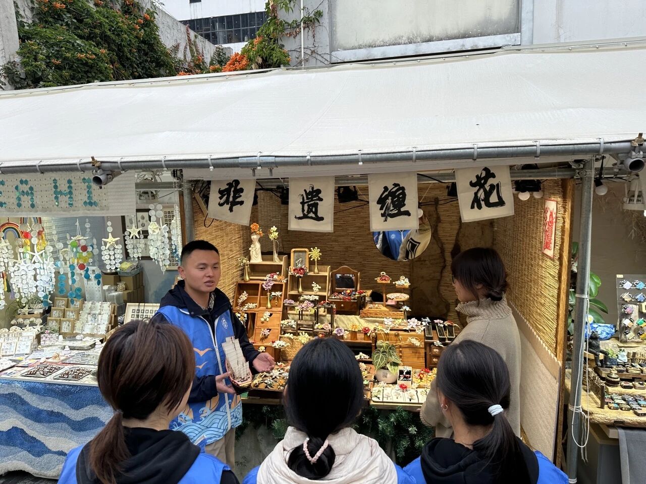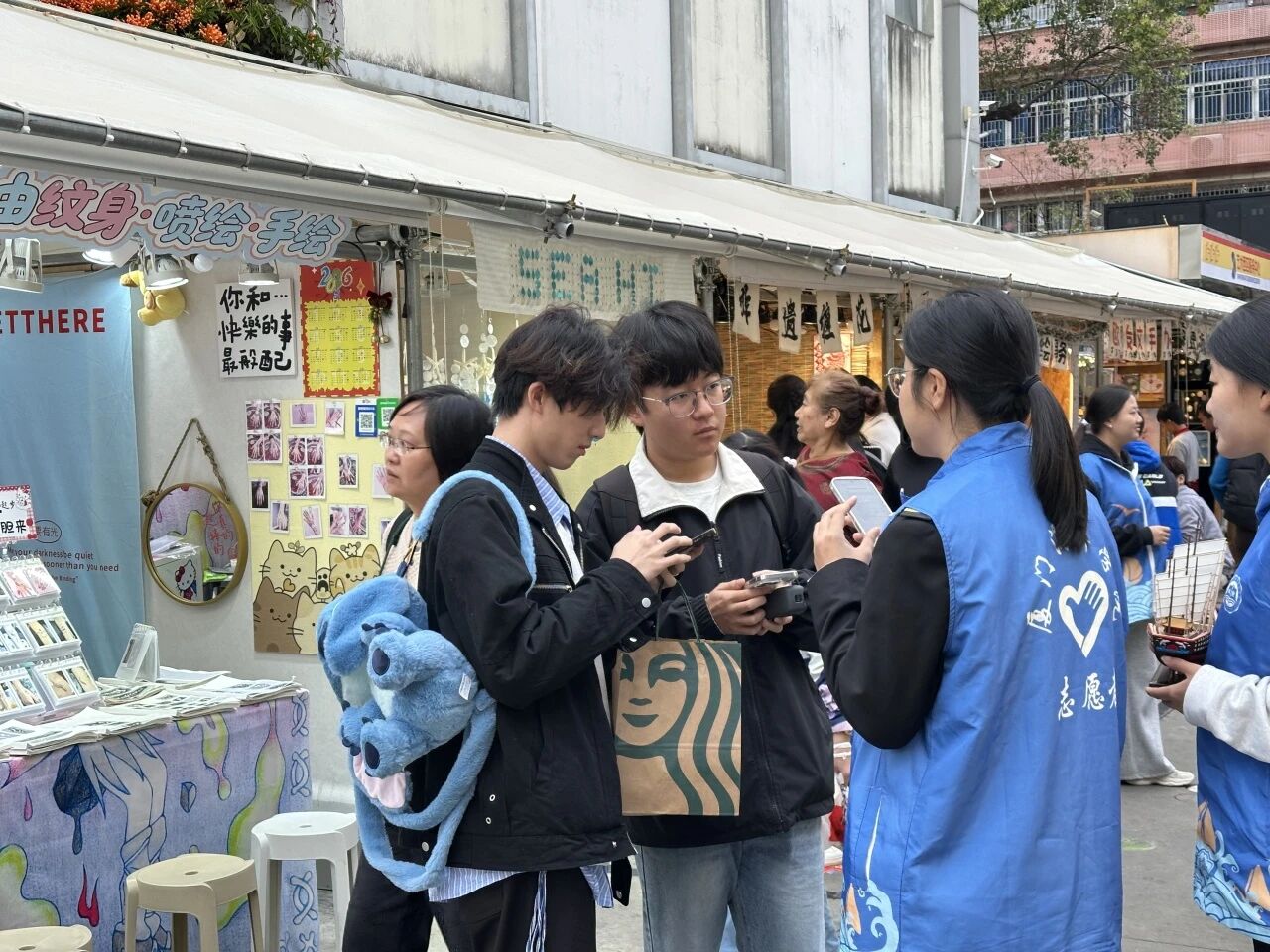 沙坡尾,曾是厦门港的起源与清代百年间唯一对台正式口岸,更在25年前见证了两岸“小三通”破冰首航。如今,这里不仅是记忆的容器,更是活力迸发的两岸交流现场。作为“小三通”亲历者与研究者,台籍教师蔡弼凯博士站在这里感慨道:“从这里到金门,航程短,却承载了几代人的奔波与期盼。”在台青负责人王伸豪的引导与分享下,师生们深入理解“王船”远非简单祭品,它是人类与海洋共生共荣的共同体象征,承载着两岸共通的祈福文化、航渡记忆与面向未知的勇气。王伸豪扎根社区、推动两岸文化互动的事迹,本身就成为融合故事的生动章节。