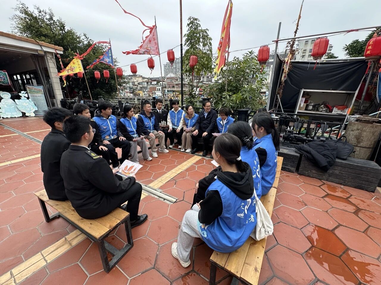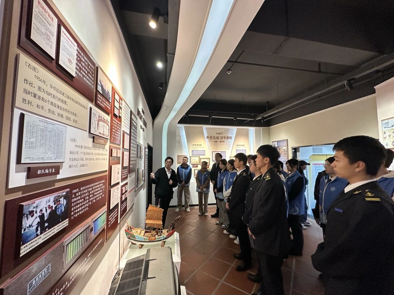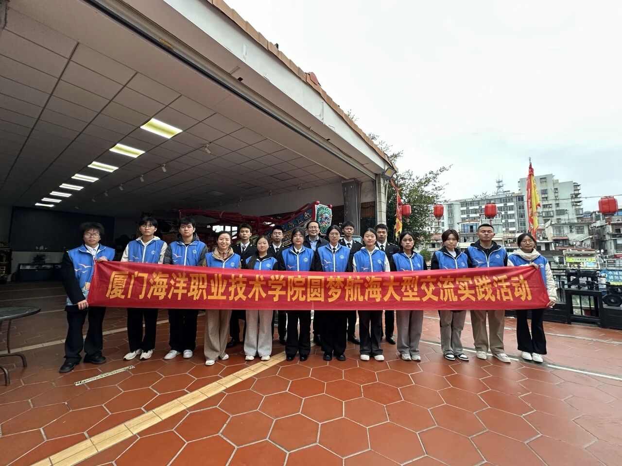 在厦门沙坡尾活态展示馆内,精美的“王船”模型静静陈列,诉说着跨越海峡的民俗记忆。近日,航海学院20名师生来到这里,开展了一场别开生面的社会实践。他们以“王船”文化为纽带,走进沙坡尾这片对台历史地标与当代台青热土,触摸两岸共同的历史脉搏,探寻文化创新的融合路径。