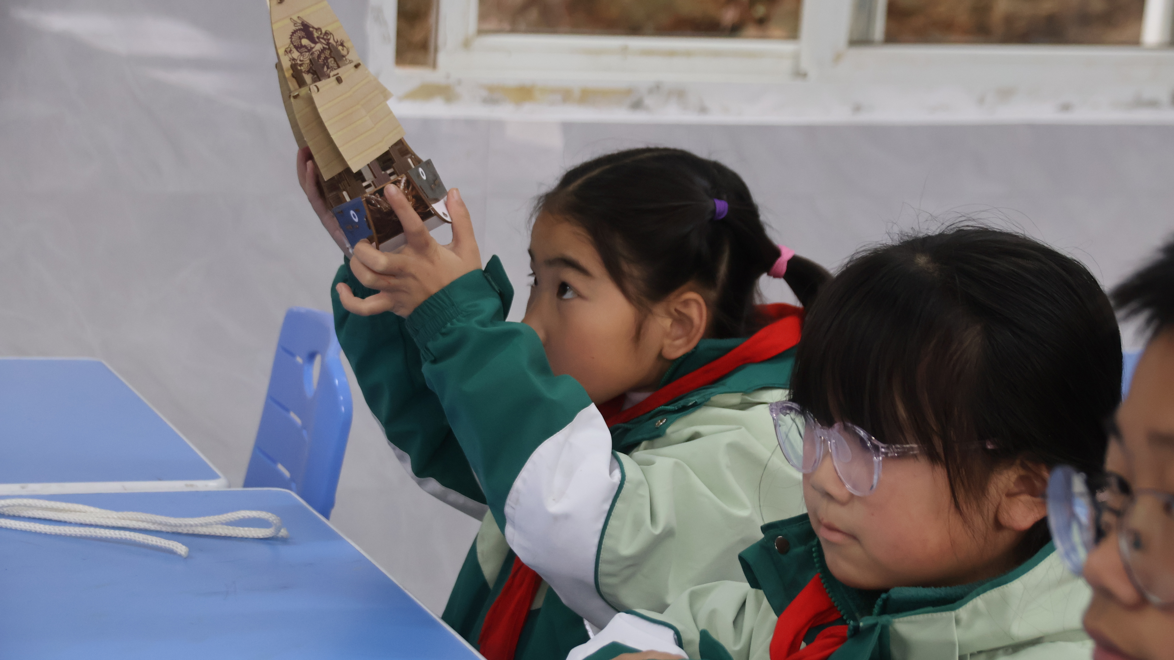 图20小朋友手持福船船模,沉浸式参与海洋文化课堂