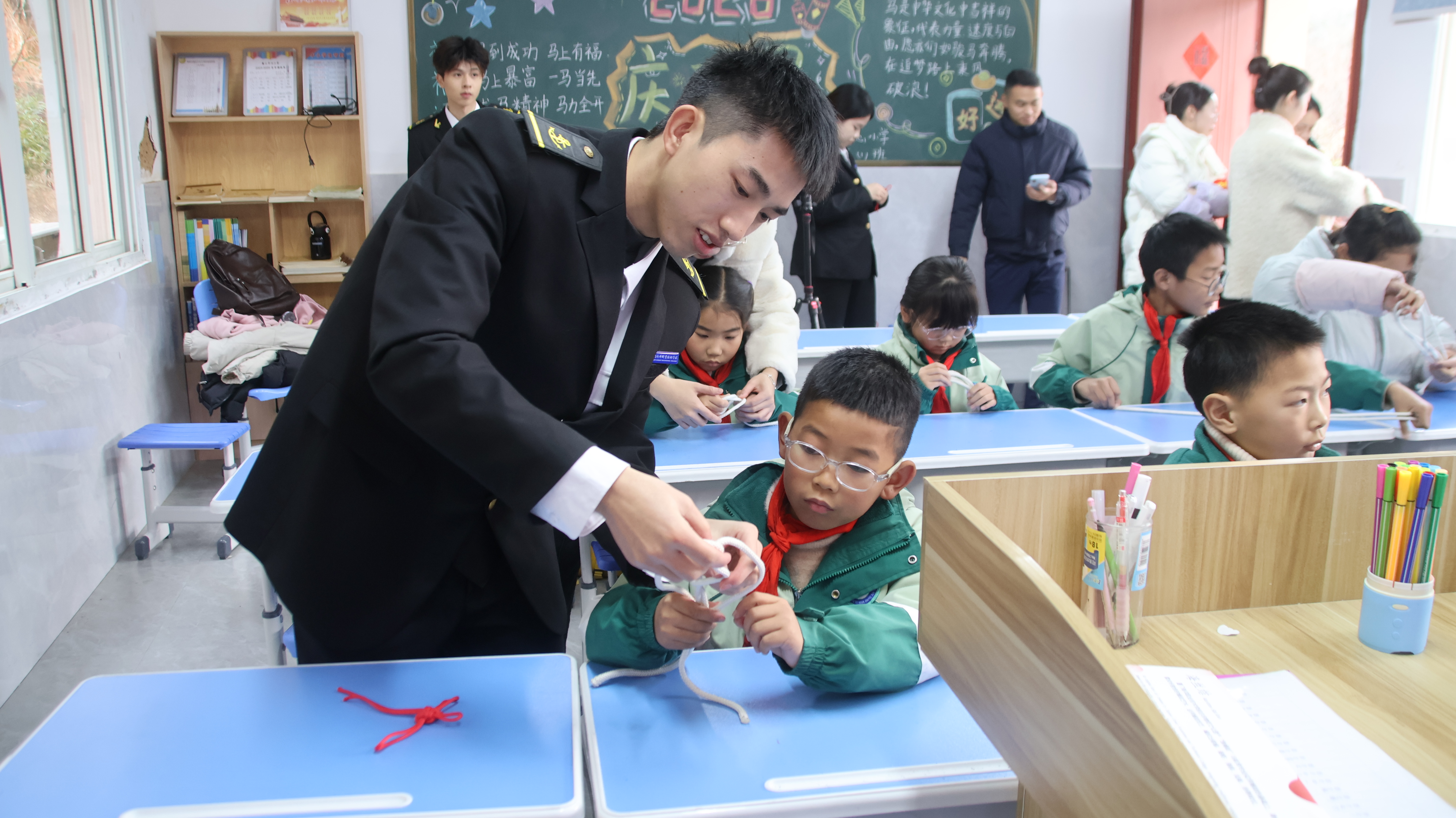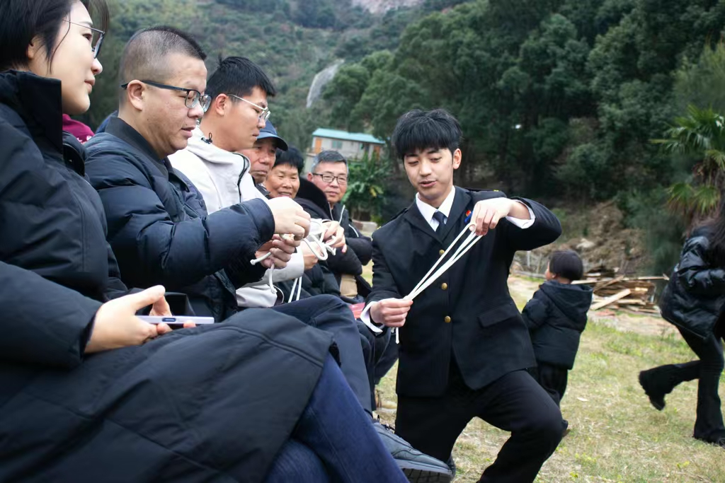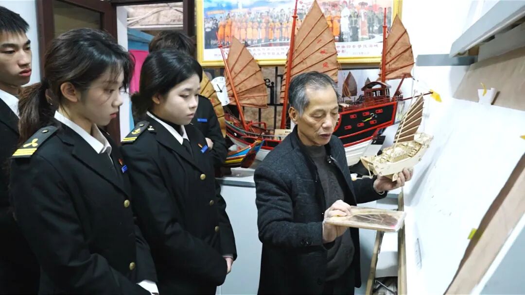 而后,在嵛山中心小学,队员们为在校学生开设海洋文化启蒙课程,通过展示福船模型、讲述海防历史、教授实用绳结技艺等方式,激发青少年对家乡海洋文化的认知与兴趣。