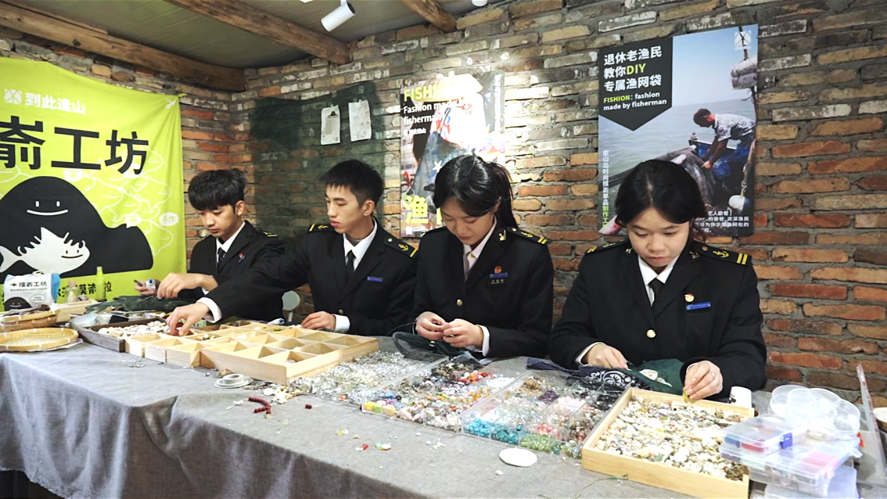 实践队还积极参与岛上“摸嵛工坊”及“梦为鱼”等本土文创品牌产品的,提出将闲置的渔船揽绳、海洋漂浮物等特色材料转化为更多文创产品的建议,用青年视角及担当,协助岛民实现小岛的可持续发展。