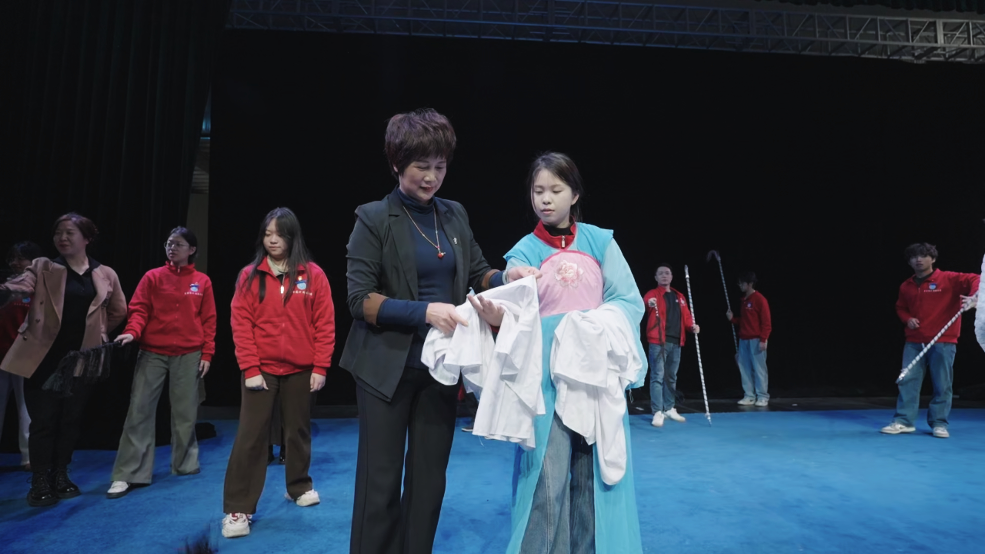 “锣鼓起,乡愁聚;唱腔扬,两岸望。”道尽了这门艺术的海峡情缘。作为横跨闽台的独特剧种,芗剧是两岸文化交融的鲜活见证,更是连接两岸同胞的精神纽带。实践队首站走进漳浦竹马戏(芗剧)传承保护中心,先后采访中心主任杨海港,艺术总监、非遗传承人林艳环老师,深入了解芗剧传承故事与发展现状。林艳环为实践队系统梳理芗剧的历史渊源、艺术特色与表演形式,细数这门艺术跨越海峡的交融历程。据悉,明末清初漳州民间艺术随移民入台,与当地曲调融合形成歌仔戏;二十世纪20年代,台湾歌仔戏班跨海回闽,与闽南竹马戏碰撞融合,后逐步定名“芗剧”,一部芗剧发展史,便是两岸文化双向奔赴的交融史。