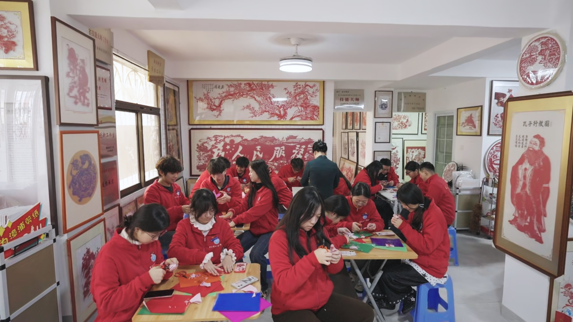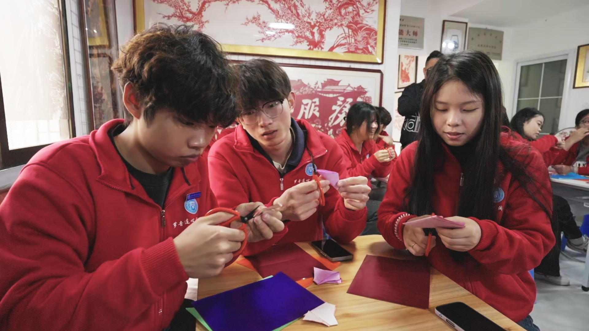 “漳浦剪纸技法明清时便随移民入台,如今台湾剪纸的纹样、手法与我们一脉相承。”欧阳艳君的一席话,道出漳台剪纸的同源之根。多年来两岸剪纸艺人常互访交流、联袂创作,共同打造的作品在海峡两岸巡展,让这门指尖技艺成为两岸文化认同的鲜活载体。实践队师生亲手体验剪纸创作,在一折一剪中体悟非遗传承的匠心,读懂了蕴藏其中的两岸同源文化密码。
