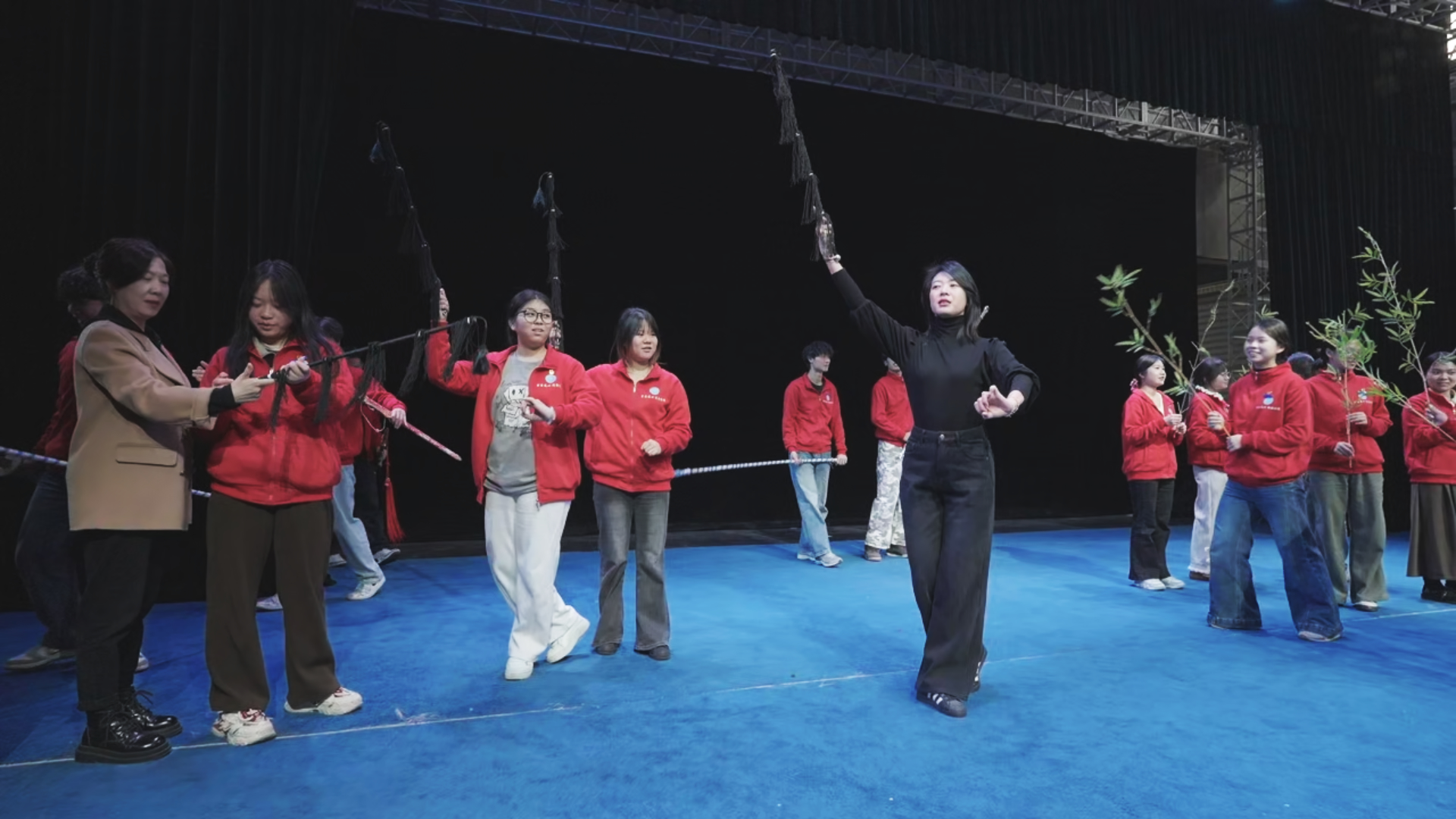 在传承中心,实践队师生现场观看《跑四美》《唐二别妻》等经典剧目选段,演员们“唱念做打”间的程式之美,将闽南乡土记忆与文化根脉娓娓道来。在传承人手把手的传授下,两岸青年学子兴致盎然地亲身体验福建省非物质文化遗产——竹马戏的基础身段与唱腔,抬手投足间感受传统戏曲的独特韵味,沉浸式触摸这门艺术的魅力。实践队师生还与传承人交流探讨青年一代参与竹马戏(芗剧)传承的路径方法,得知这里作为浦台两岸文化交流示范基地,每年都迎来两岸演员同台演绎,戏韵声声化作两岸同胞心与心的联结,“芗”音亦是“乡音”。