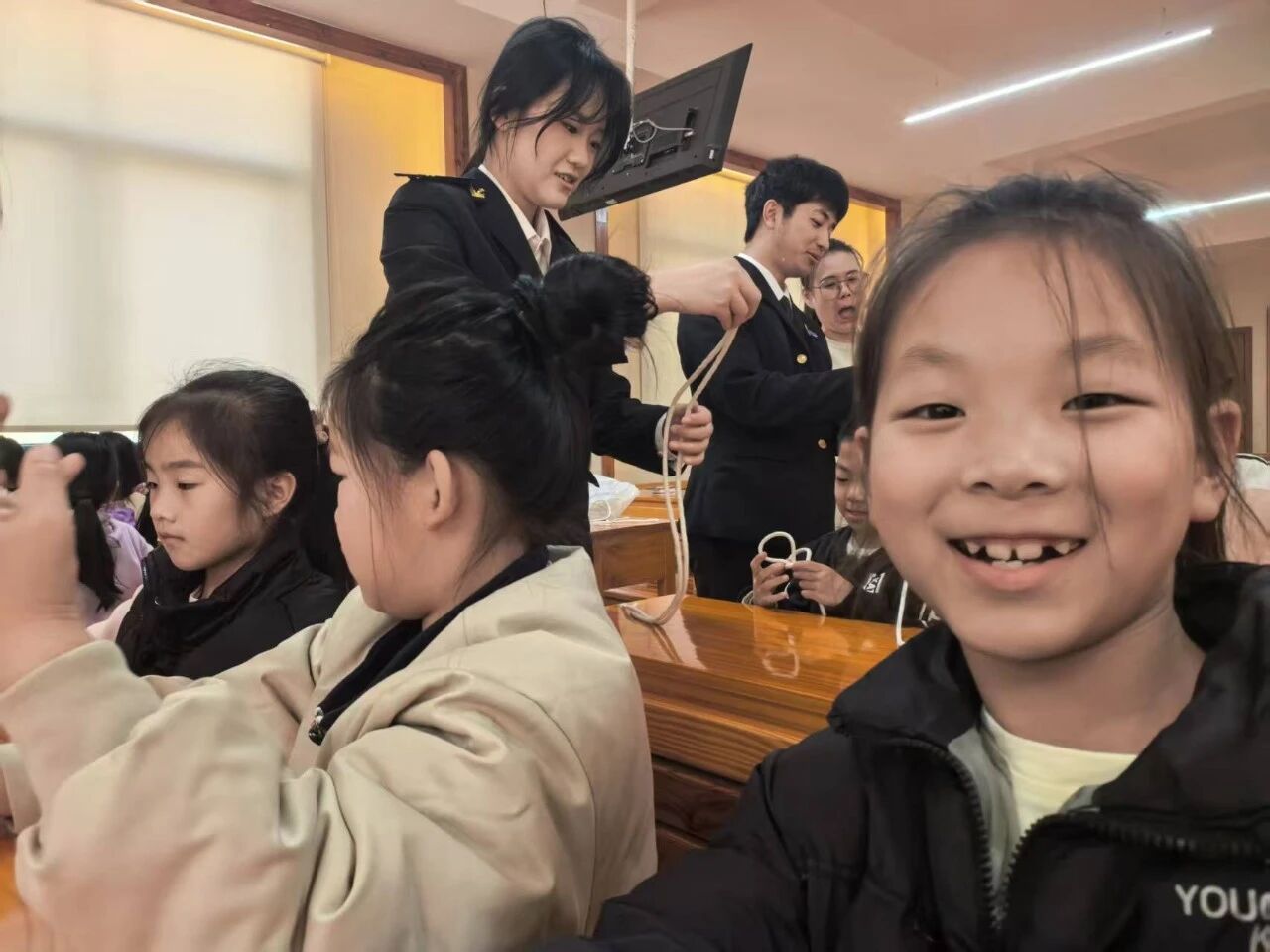 从水手结教学到心肺复苏、止血包扎等急救知识,志愿者们手把手教学,让孩子们在动手实践中掌握实用技能。