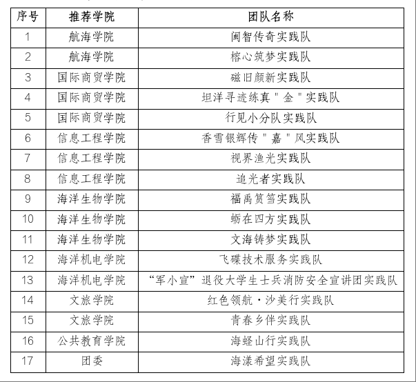 2024年厦门海洋职业技术学院大学生暑期“三下乡”社会实践评选结果公示名单