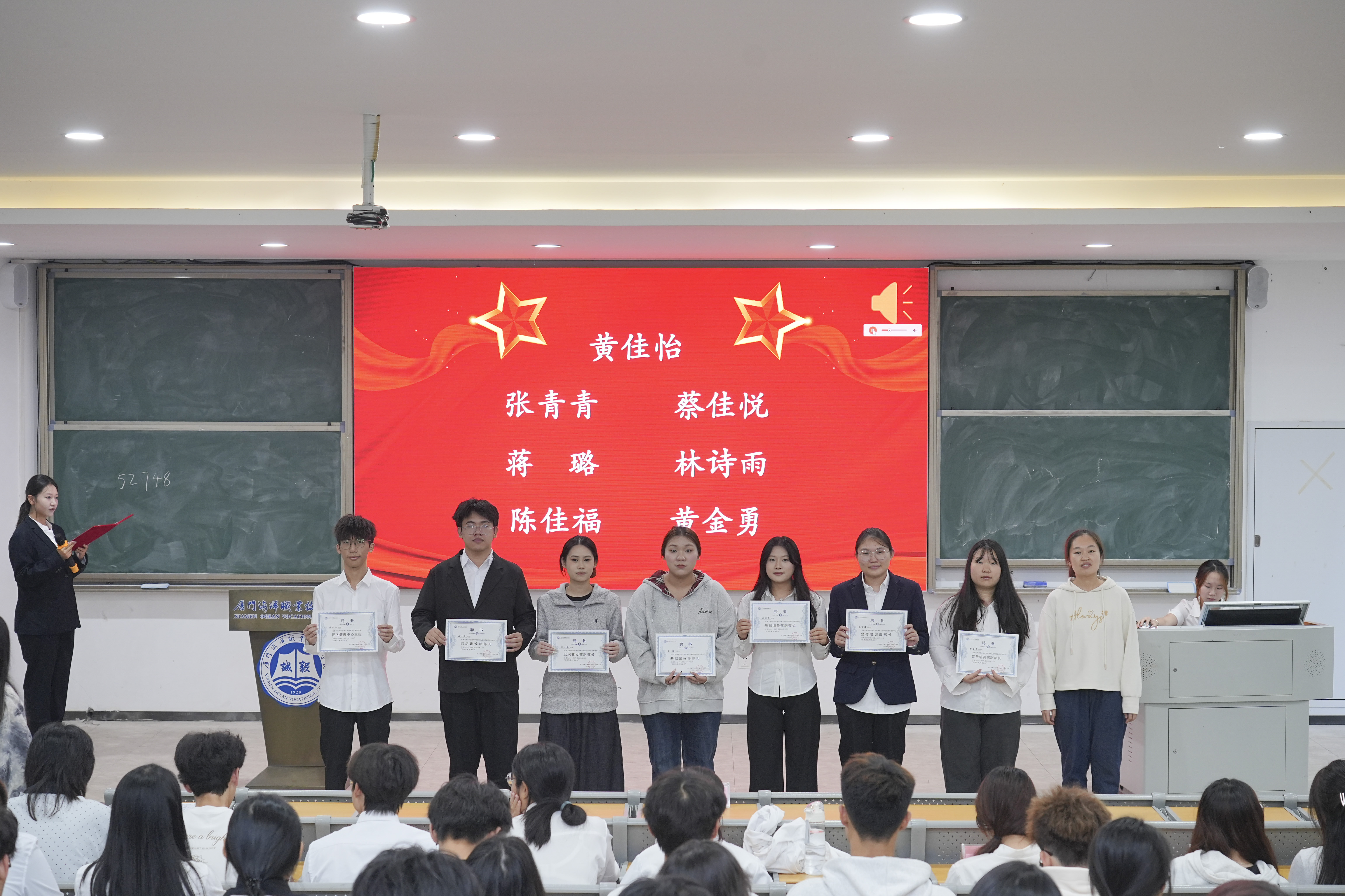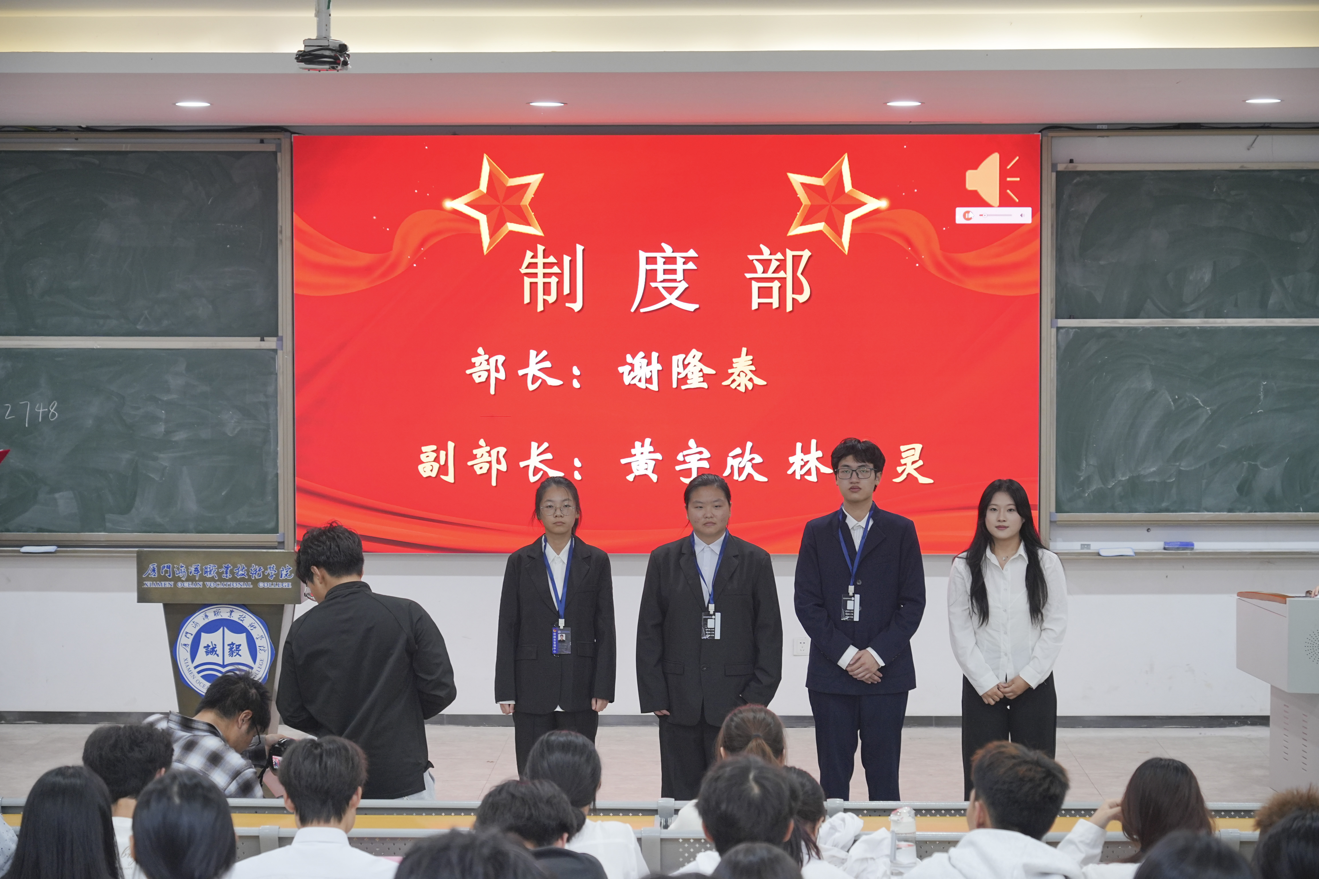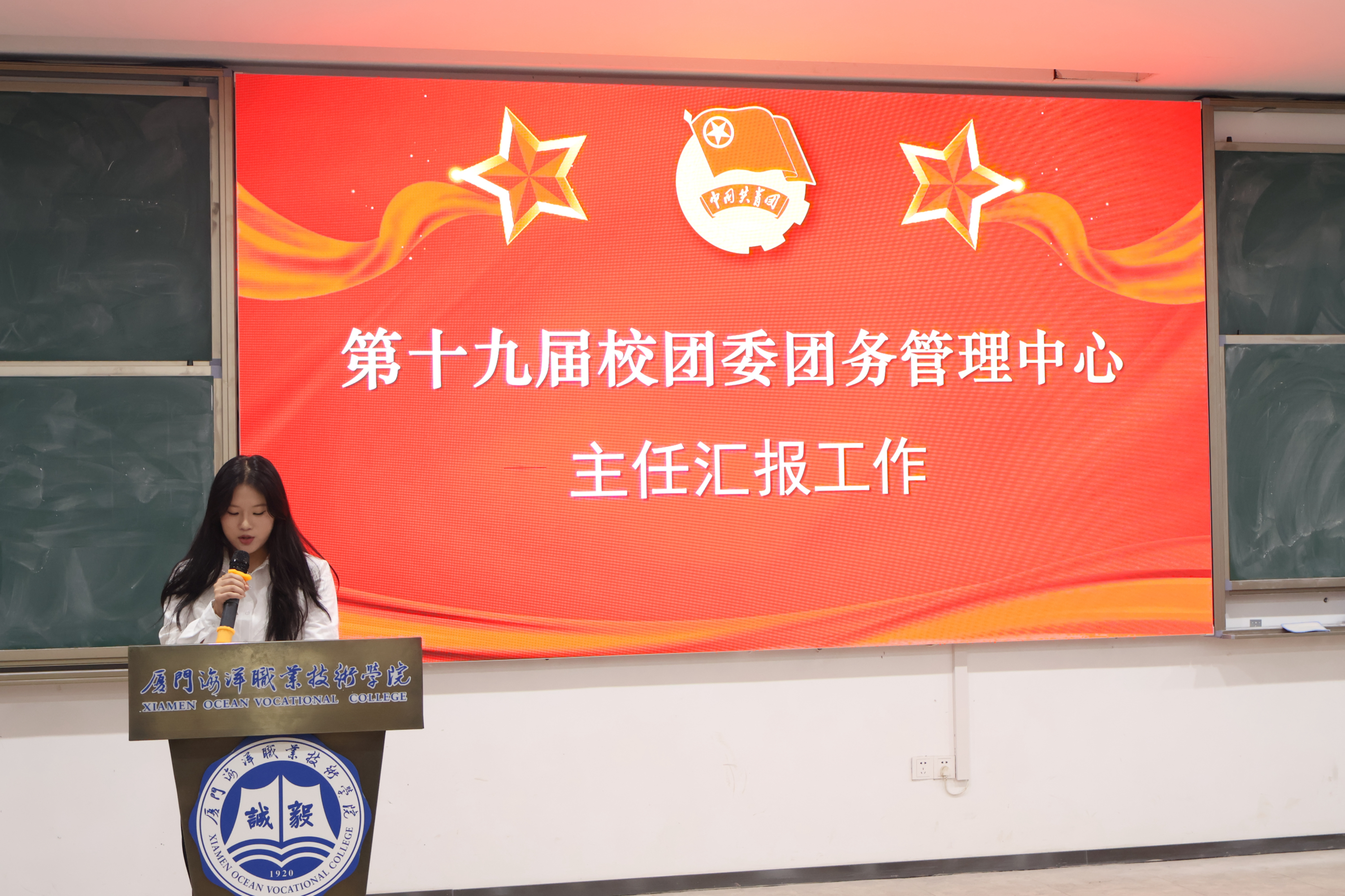 厦门海洋职业技术学院第二十届团务管理中心换届大会于12月1日13:00在翔安校区T1报告厅举行。校团委团务管理中心指导老师刘娟老师,团务管理中心全体干部、各大学生组织代表、各二级学院学生组织部干部代表出席了本次会议。