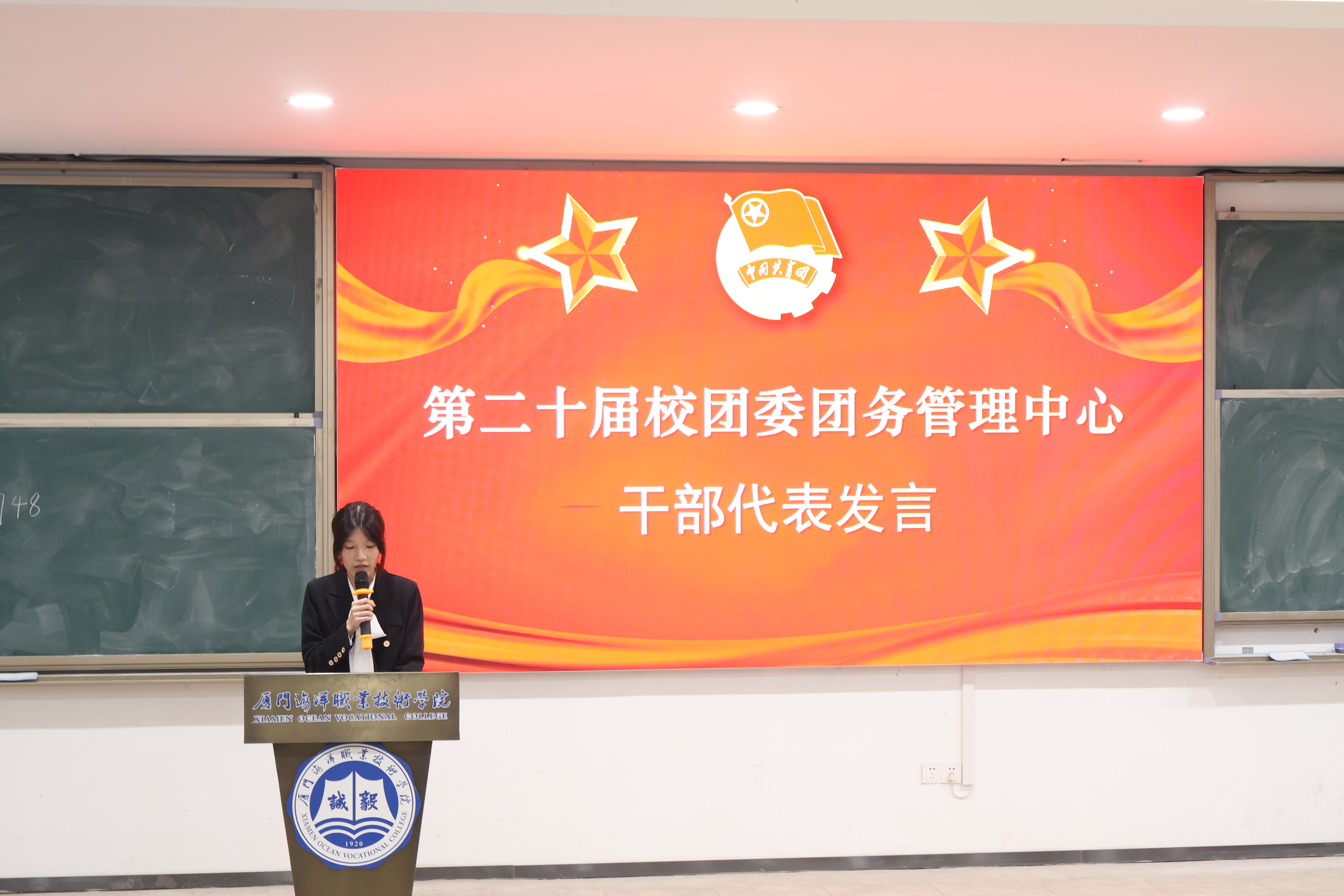 第二十届团委团务管理中心干部代表傅宝怡,代表新一届全体干部展望未来目标。她表示,作为新一批团务干部,他们深知使命在肩、责任重大。新的征程已经启航,新一届学生干部必将以青春之名赴时代之约,传承嘉庚精神,擦亮海洋特色,在团务工作的赛道上奋力奔跑,为学校共青团事业书写更具活力、更有温度的新篇章!