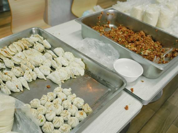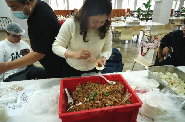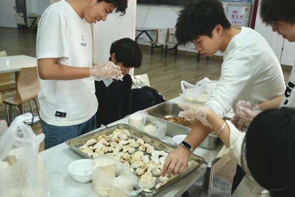 活动当天,食堂内暖意融融,欢声笑语不断。同学们洗净双手,纷纷化身“饺子造型师”。有的同学手法娴熟,捏出的饺子褶花均匀精致;有的同学则是初次尝试,在伙伴的指导下认真包出人生的第一个饺子。大家一边忙碌,一边分享各自家乡的冬至习俗,不同形状的饺子——月牙饺、元宝饺、麦穗饺逐渐摆满了餐盘,现场其乐融融,充满了温暖的烟火气。