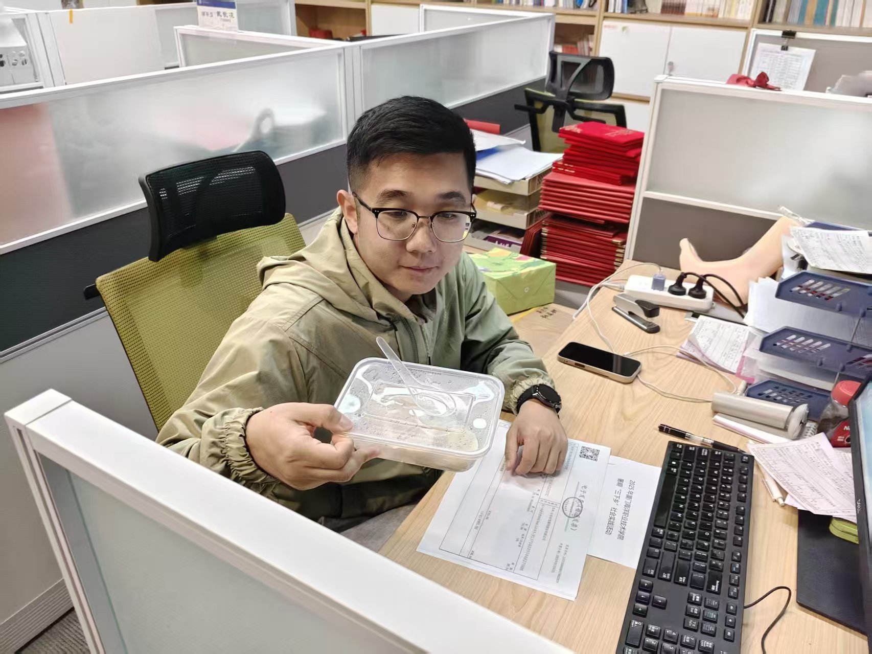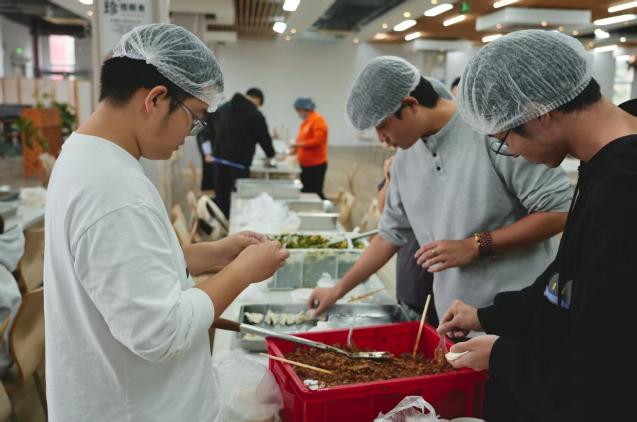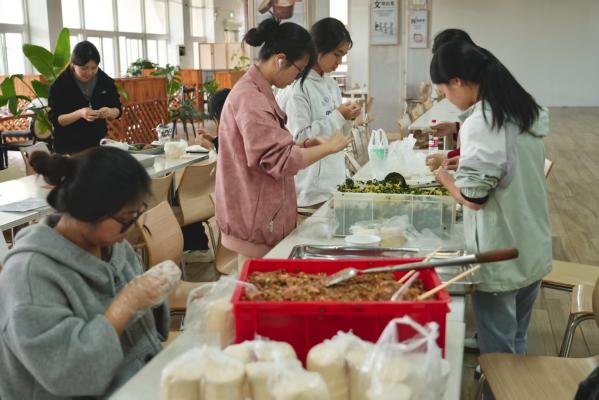 随着热气升腾,一盘盘象征团圆与福气的饺子新鲜出炉。同学们品尝着自己亲手制作的美食,脸上洋溢着满足的笑容。更为暖心的是,部分煮好的饺子被细心地打包起来,由学生志愿者送至同学以及老师的手中。这份突如其来的“冬至惊喜”,让饺子的香气与情谊在校园的各个角落流淌。