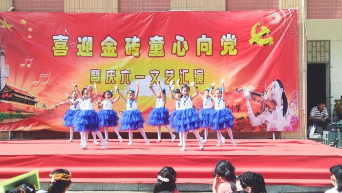 在一年级一班小朋友活泼俏皮的《蓝精灵》舞蹈中汇演拉开了序幕,这群一年级一班的小朋友通过优美活泼的舞姿向我们展现出党的接班人欣欣向荣的一面。高年级的学生们也不甘示弱,他们为我们带来了具有公益意义的小品《竞选》,节目中,她们通过巧妙的动作和语言引得台下阵阵发笑的同时也让学生明白了节约用水的重要性,课本剧《拥有一颗感恩的心》通过一幕幕小剧场向大家展示生活中温暖的小故事。严谨的五步拳表演更是让大家感受到了中华武术的震撼人心。此次活动通过小品、相声、歌舞等表演让孩子们在寓教于乐中明白了如何树立一个节约用水用电、爱护身边环境花草、文明礼貌待人的金砖小主人形象。“每个梦想都值得灌溉,眼泪变成雨水就能落下来,每个孩子都应该被宠爱,他们是我们的未来”。在志愿者们悠扬欢快的歌声中“喜迎金砖,童心向党”庆六一文艺汇演活动拉下帷幕,本学期的支教活动也走到了尾声,孩子们表演完,支教小老师们和孩子们一起合照留念,小朋友们也和支教老师们拉钩约定下学期还要再见。